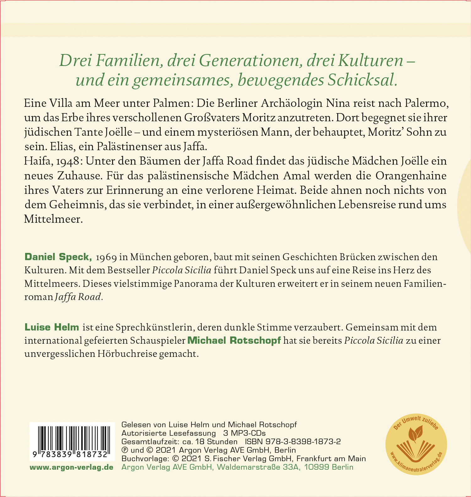 | Schlagworte | Bella Germania • Familiensaga • Familiensuche • Frauenschicksale • Generationenroman • HAIFA • israel gründung • Israel-Palästina-Konflikt • Luise Helm • Michael Rotschopf • Mittelmeer-Raum • München • Nachkriegszeit • Naher Osten • Nahostkonflikt • Palästinenser • Palermo • Piccola Sicilia • Sizilien • spiegel bestseller • Spiegel Bestseller 2022 • Spiegel Bestsellerliste 2022 • Tunis • Westjordanland |
