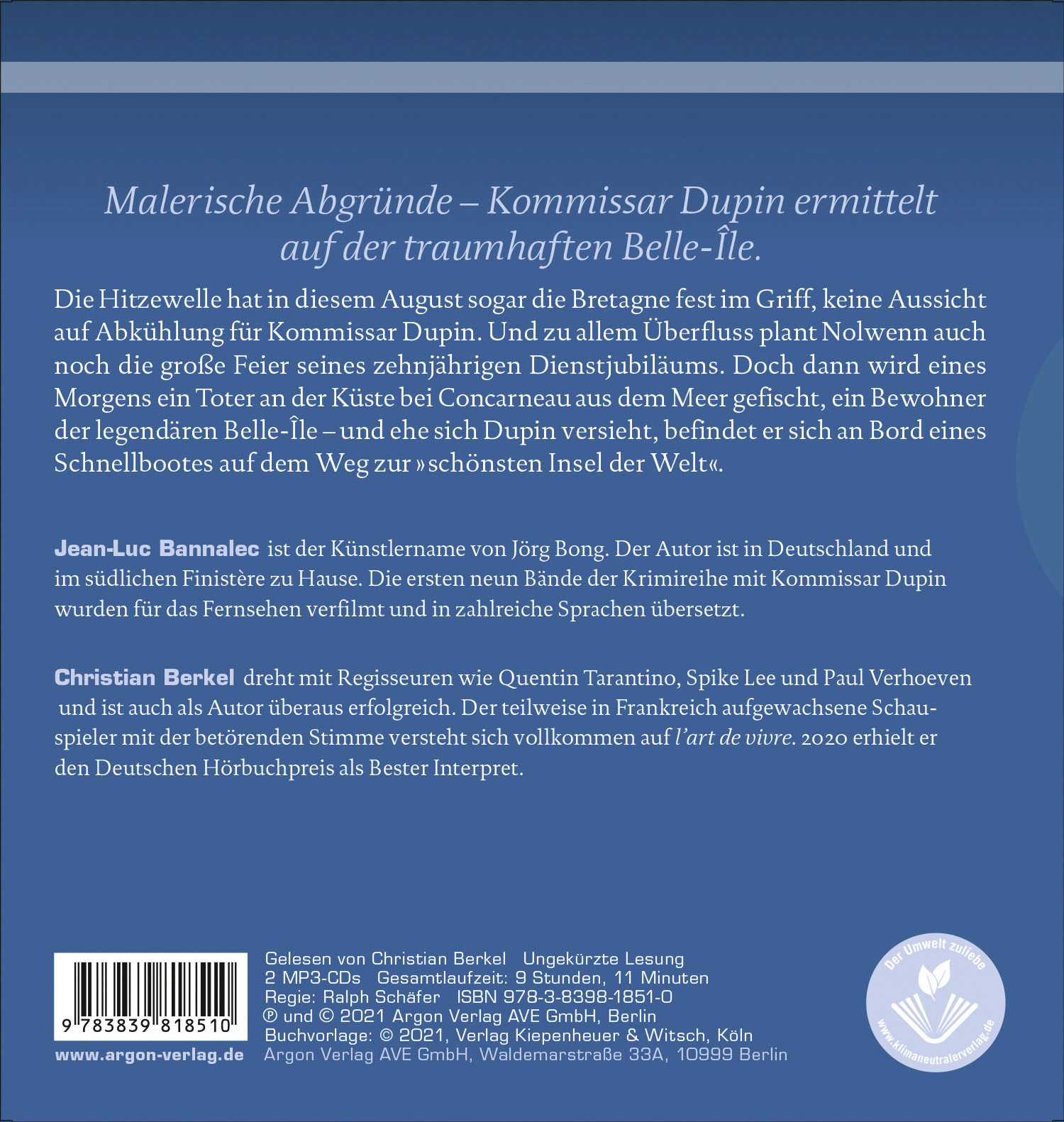 Und zu allem Überfluss plant Nolwenn auch noch die große Feier seines zehnjährigen Dienstjubiläums. Doch dann wird eines Morgens ein Toter an der Küste bei Concarneau aus dem Meer gefischt, ein Bewohner der legendären Belle-Île – und ehe sich Dupin versieht, befindet er sich an Bord eines Schnellbootes auf dem Weg zur »schönsten Insel der Welt«.