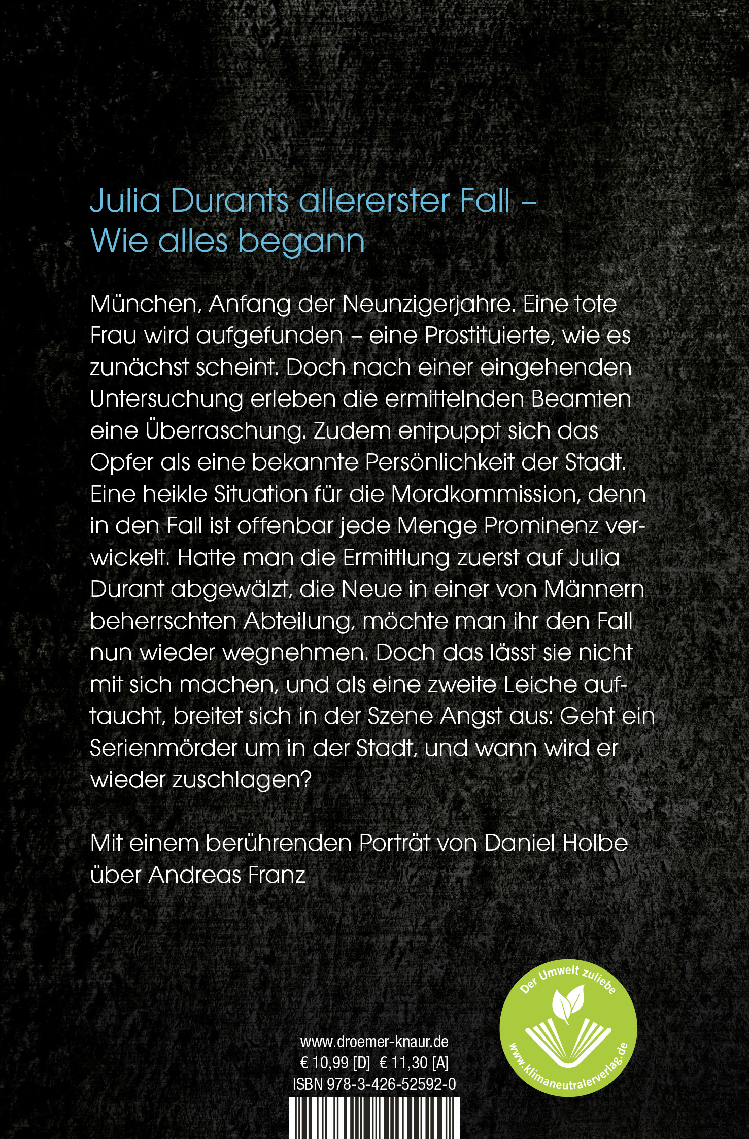Wie war das eigentlich damals, als Julia Durants Karriere begann? In diesem spannenden Krimi lernt der Leser die Kommissarin in ihren Anfängen in München kennen: schon damals hartnäckig, klug und voller origineller Ermittlungsideen. Ein Muss für alle, die die Kommissarin Julia Durant lieben! Der 21. Band in der Bestsellerserie um die Kommissarin Julia Durant – und ihr allererster Fall. Ein besonderer Leckerbissen für alle Franz/Holbe-Fans, denn sie lernen Julia Durant in ihrer Anfangszeit in München kennen. Mit Bonusmaterial: ausführliches und sehr persönliches Porträt zu Andreas Franz.