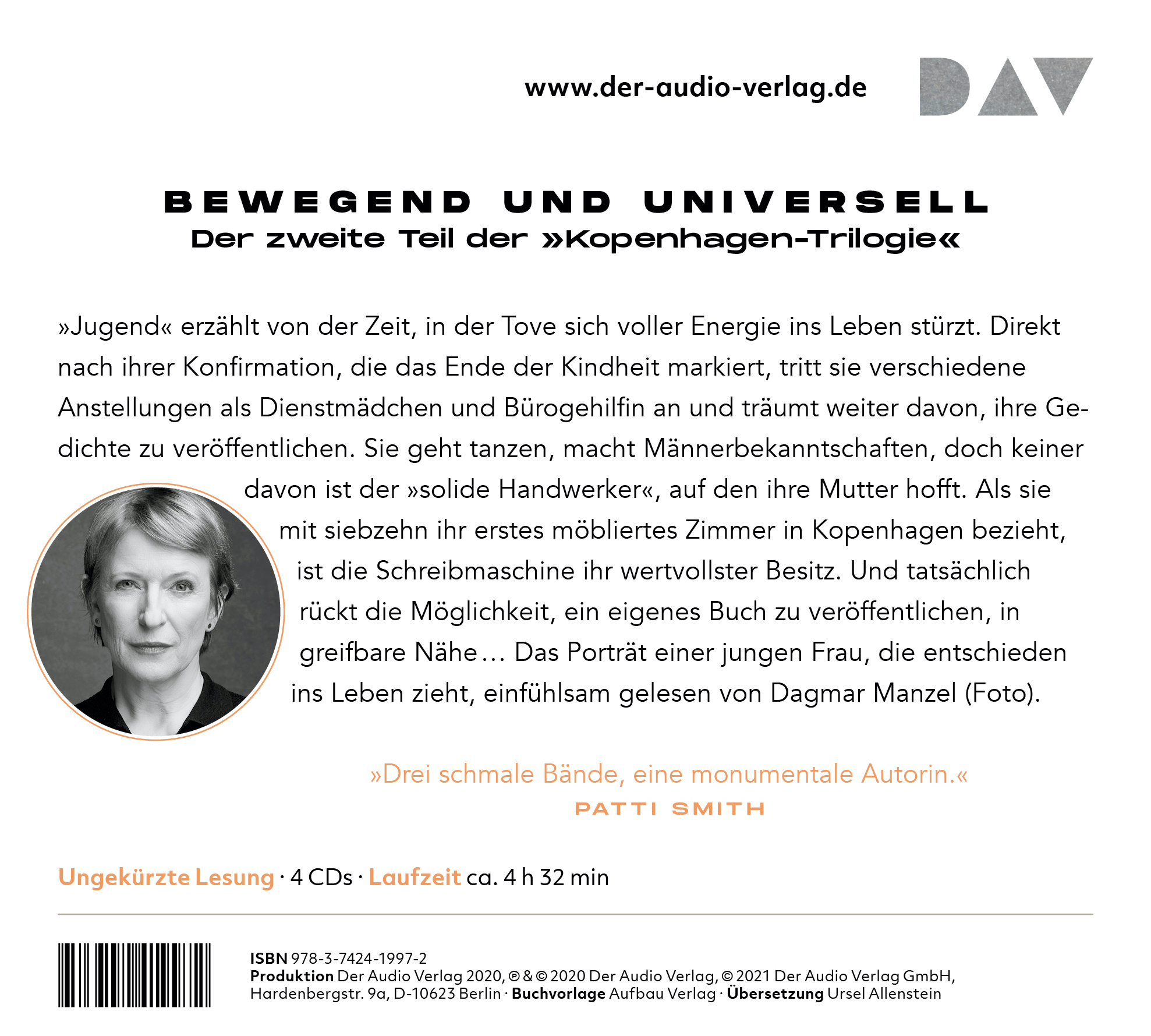 »JUGEND« erzählt von der Zeit, in der Tove sich voller Energie ins Leben stürzt. Mit 14 Jahren verlässt sie die Schule, beginnt, in Kopenhagen eine Reihe von kleinen Jobs anzunehmen, arbeitet als Dienstmädchen und Bürogehilfin, sie schlägt sich durch.