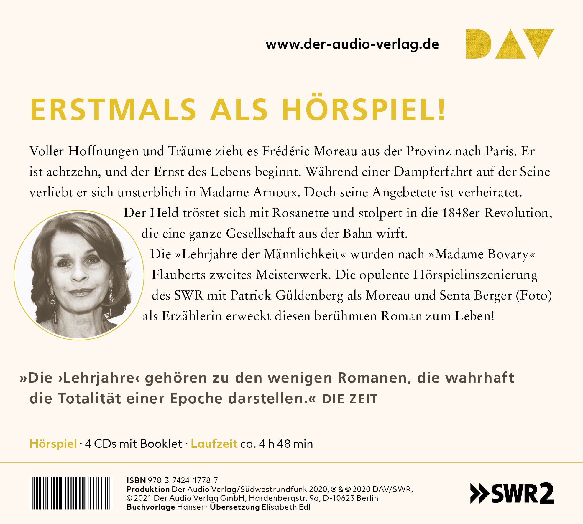 | Schlagworte | 1848 • Bildungsroman • Education sentimentale • Erziehung der Gefühle • Geschichte • Gesellschaftsroman • Hörspie • Klassiker • Lehrjahre des Herzens • Madame Bovary • Neuübersetzung • Paris • Revolution |