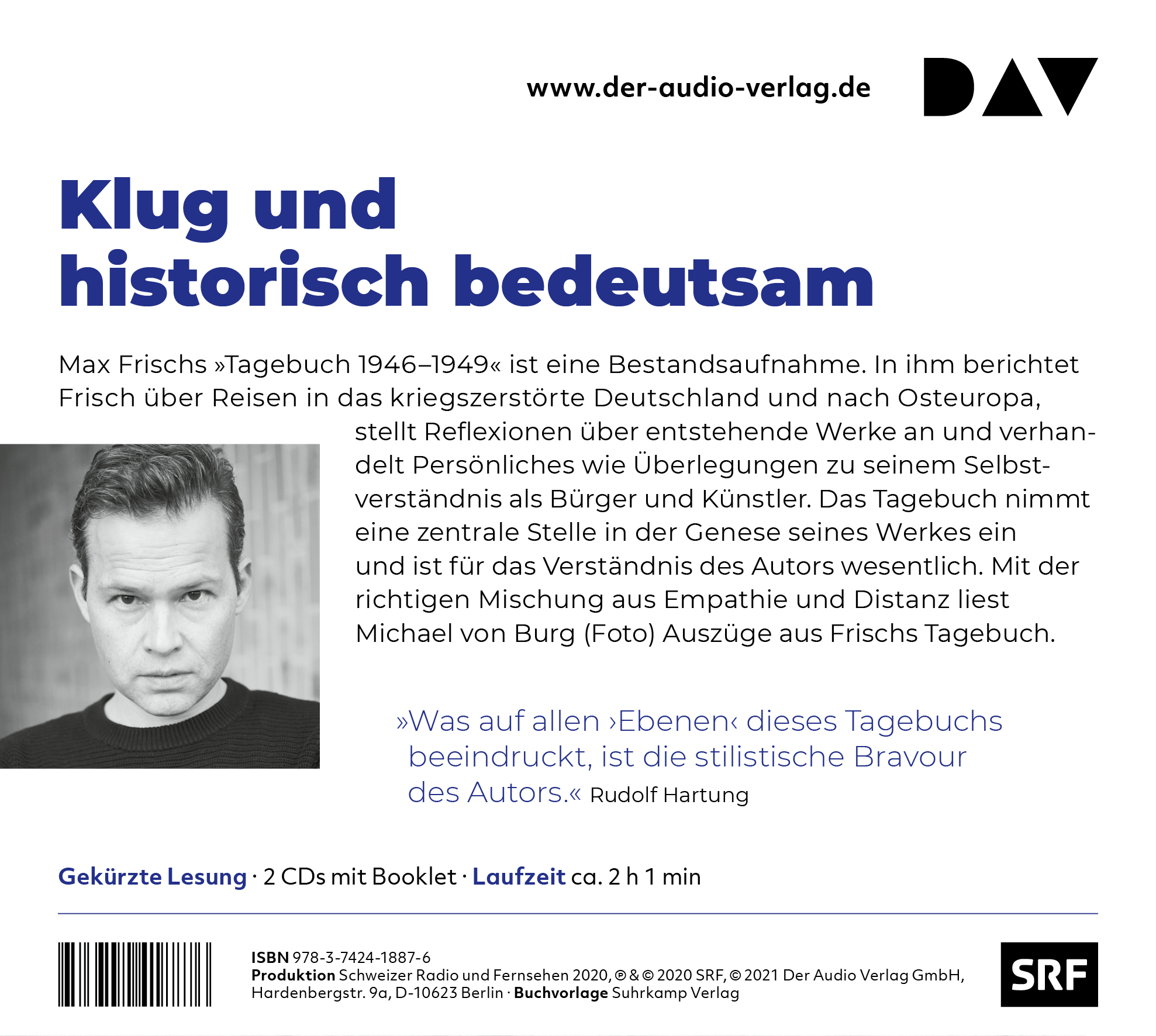 | Schlagworte | Erinnerungen • Homo Faber • Klassiker • Nachkriegszeit • Privates • Schweiz • Stadtbilder • Stiller • Tagebuch |