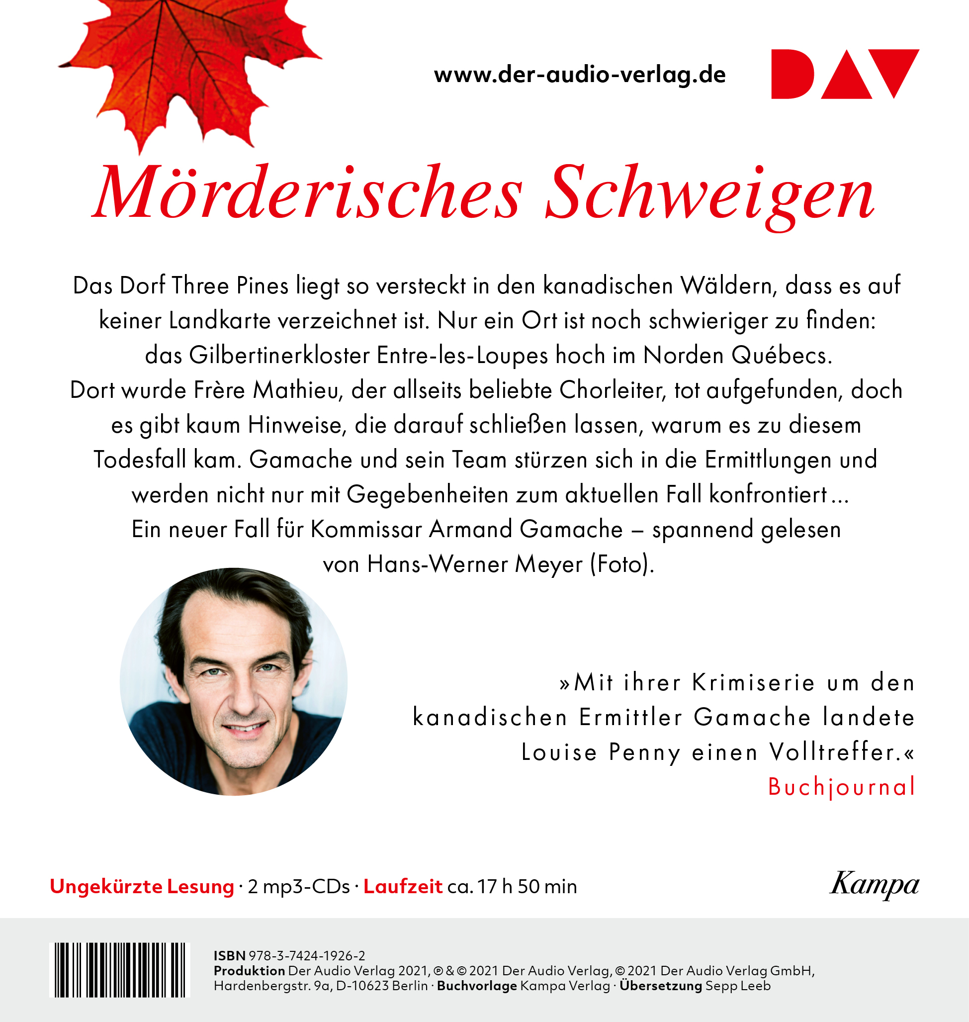 Hans-Werner Meyer, geboren 1964 in Hamburg, ist einer der bekanntesten deutschen Film- und Theaterschauspieler. Neben Engagements am Residenz-Theater in München und an der Berliner Schaubühne war er u.a. in »Der Baader Meinhof Komplex« zu sehen. Hans-Werner Meyer ist fester DAV-Sprecher für die Hörbücher von Louise Penny.