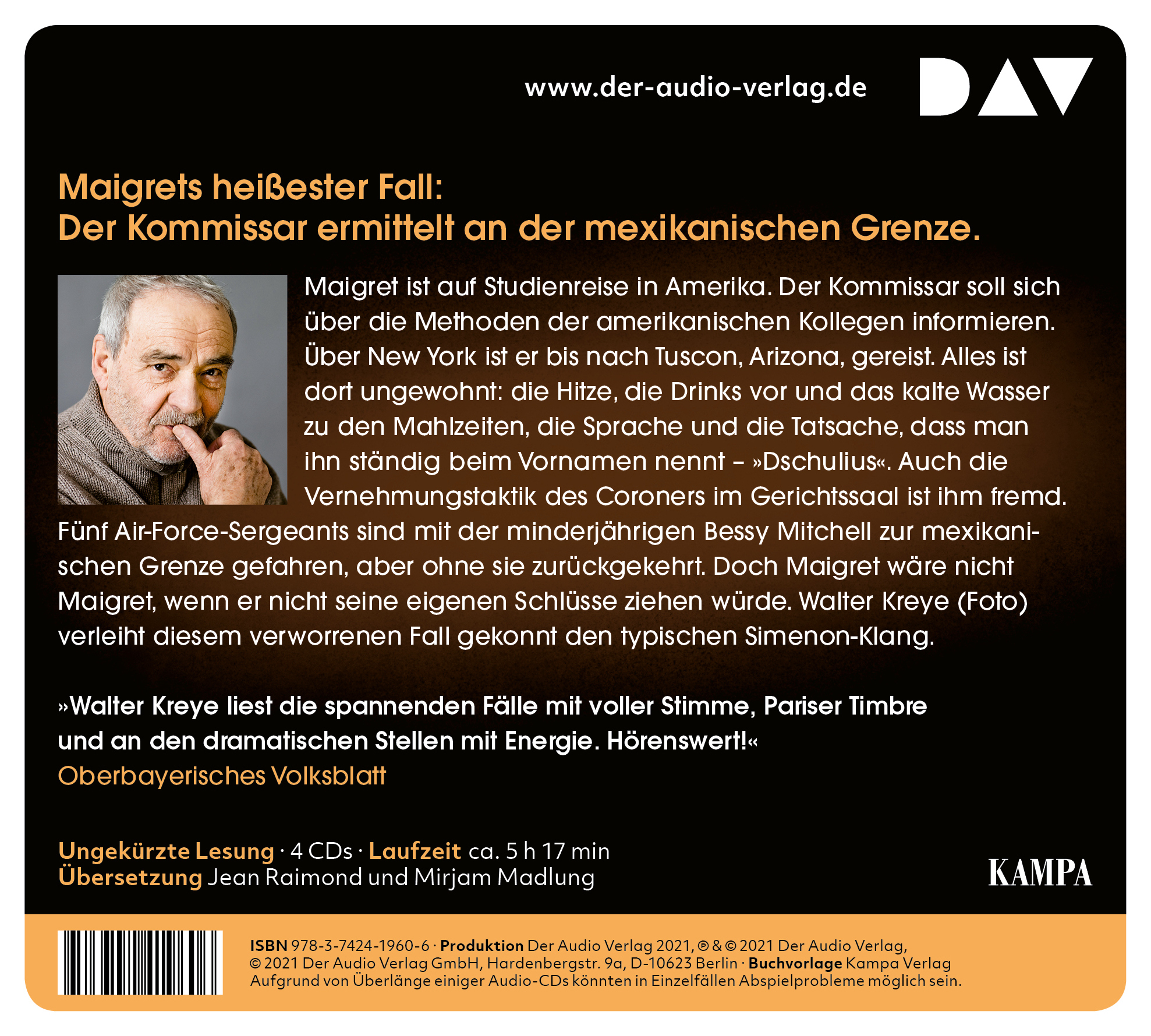 | Schlagworte | 32. Fall • Air Force • Amerika • Atmosphäre • Coroner • Klassiker • Kommissar • Maigret • Mexikanische Grenze • Mord • Paris • Quai des Orfevres • Reihe • Retrokrimi • Studienreise • Tucson |