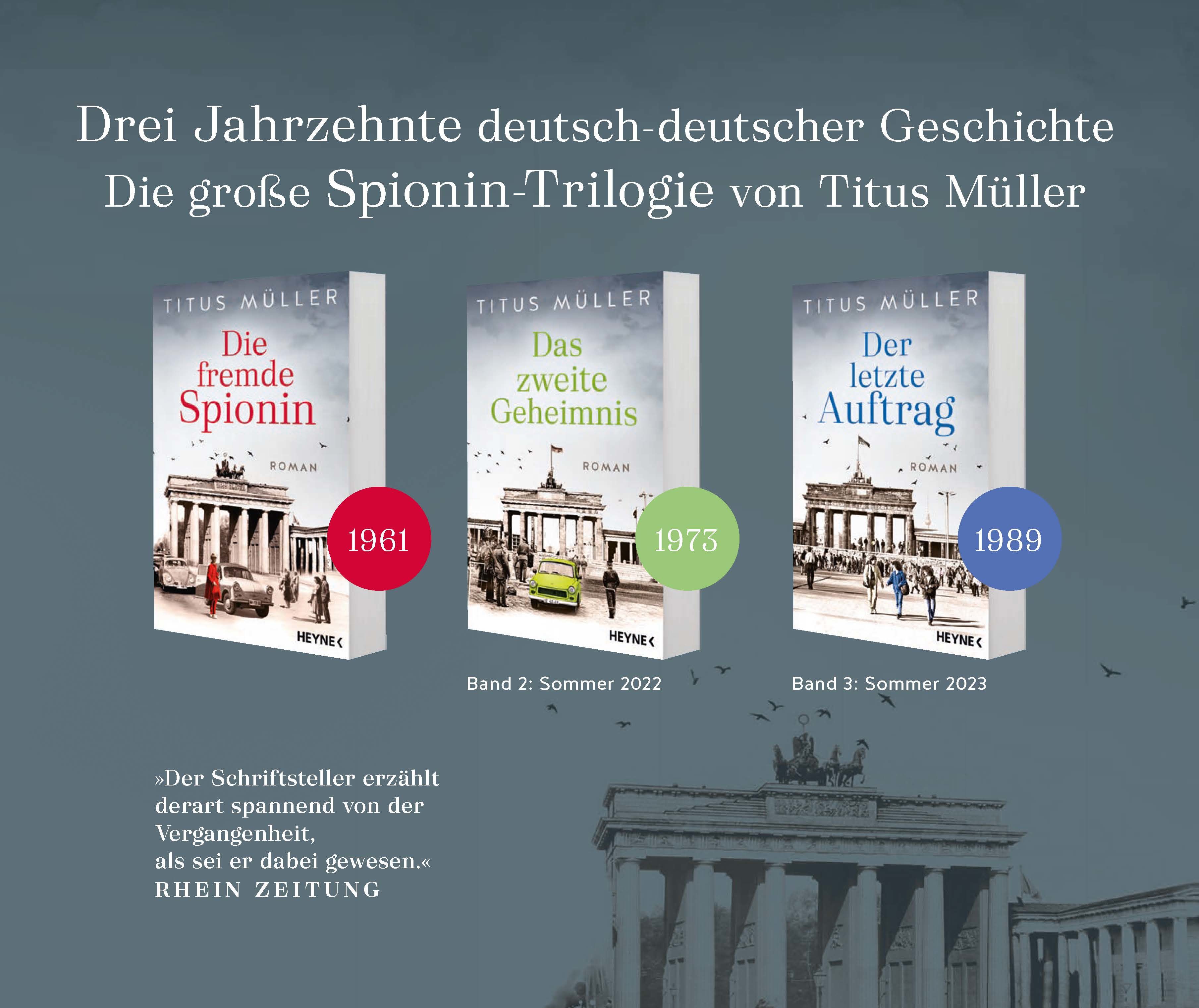 Titus Müller, geboren 1977 in Leipzig, hat 13 Romane und 7 Sachbücher geschrieben. Er ist Mitglied des PEN-Clubs und wurde u. a. mit dem C. S.-Lewis-Preis, dem Sir-Walter-Scott-Preis und dem Homer-Preis ausgezeichnet. Seine große Spionin-Trilogie erzählt die Geschichte einer mutigen Frau – und drei Jahrzehnte deutsch-deutscher Geschichte.