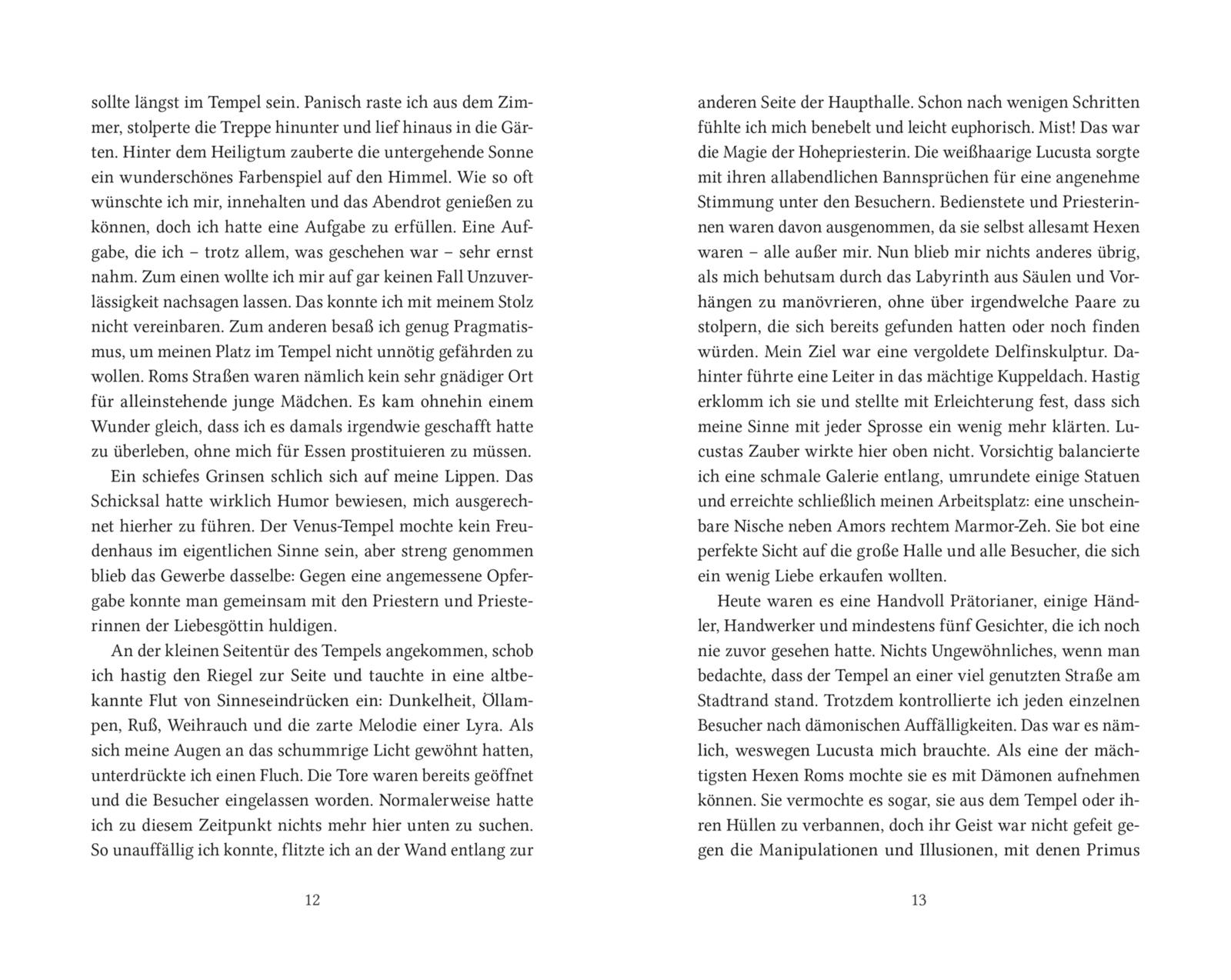 Die junge Tempeldienerin Cassia weiß genau, wer hinter dem Tod ihrer Freundinnen steckt, aber der skrupellose Dämon Ianus wird in ganz Rom als Gott verehrt und scheint unantastbar. Als dem Mädchen, das immun gegenüber dämonischen Kräften ist, eines Tages in Aussicht gestellt wird, Ianus zu Fall zu bringen, willigt sie ohne Zögern ein, sich als Sklavin in dessen Palast einschleusen zu lassen. Doch dort bringt ein unerwarteter Gast ihre Pläne durcheinander: Belial, seines Zeichens angehender Teufel und Ianus' Erzrivale. Cassias ohnehin riskante Mission droht an seinem unwiderstehlichen Lächeln zu scheitern und wird noch aussichtsloser, als sie plötzlich in einen dämonischen Wettstreit zwischen Bel und Ianus gerät - einem Wettstreit um ihre Seele.
