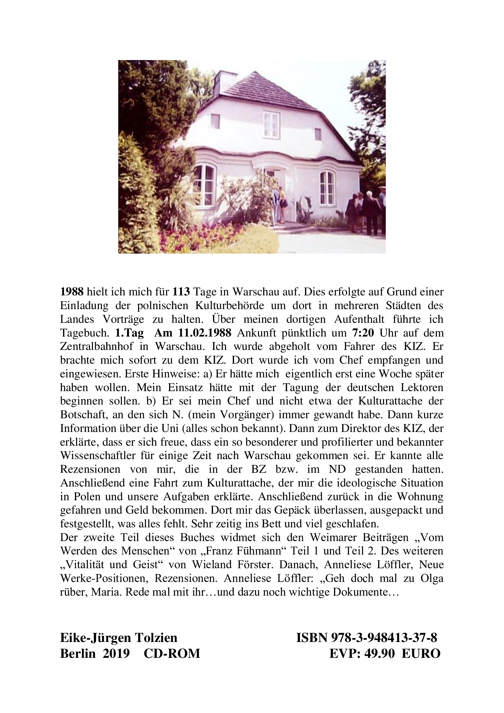 1988 hielt ich mich für 113 Tage in Warschau auf. Dies erfolgte auf Grund einer Einladung der polnischen Kulturbehörde um dort in mehreren Städten des Landes Vorträge zu halten. Über meinen dortigen Aufenthalt führte ich Tagebuch. 1.Tag Am 11.02.1988 Ankunft pünktlich um 7:20 Uhr auf dem Zentralbahnhof in Warschau. Ich wurde abgeholt vom Fahrer des KIZ. Er brachte mich sofort zu dem KIZ. Dort wurde ich vom Chef empfangen und eingewiesen. Erste Hinweise: a) Er hätte mich eigentlich erst eine Woche später haben wollen. Mein Einsatz hätte mit der Tagung der deutschen Lektoren beginnen sollen. b) Er sei mein Chef und nicht etwa der Kulturattache' der Botschaft, an den sich N. (mein Vorgänger) immer gewandt habe. Dann kurze Information über die Uni (alles schon bekannt). Dann zum Direktor des KIZ, der erklärte, dass er sich freue, dass ein so besonderer und profilierter und bekannter Wissenschaftler für einige Zeit nach Warschau gekommen sei. Er kannte alle Rezensionen von mir, die in der BZ bzw. im ND gestanden hatten. Anschließend eine Fahrt zum Kulturattache', der mir die ideologische Situation in Polen und unsere Aufgaben erklärte. Anschließend zurück in die Wohnung gefahren und Geld bekommen. Dort mir das Gepäck überlassen, ausgepackt und festgestellt, was alles fehlt. Sehr zeitig ins Bett und viel geschlafen.