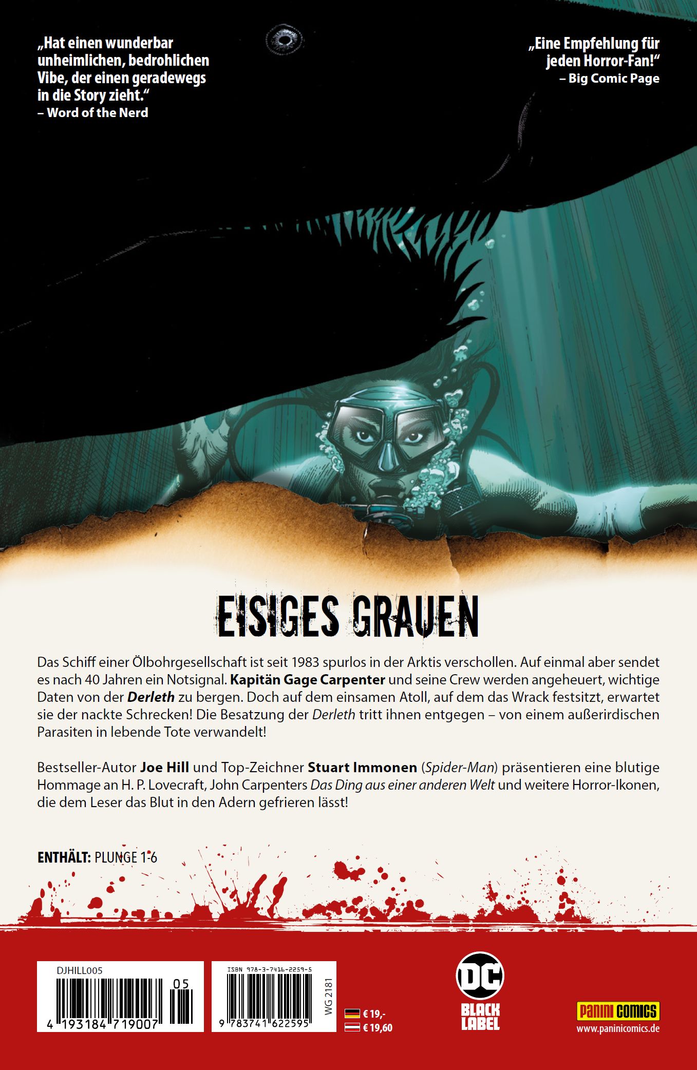 | Schlagworte | Comic • Comics • DC • DC-Comics • Derleth • F2021 • F21 • Frühjahr2021 • Frühjahr21 • Gage Carpenter • Hill House • Hororcomic • Horror • Horrorcomics • Joe Hill • Lacome • Ölbohrgesellschaft • Panini • Paninicomics • Panini Comics • Rettungsteam • Schiff • Schiffbruch • The Plunge • Wrack • Würmer |
