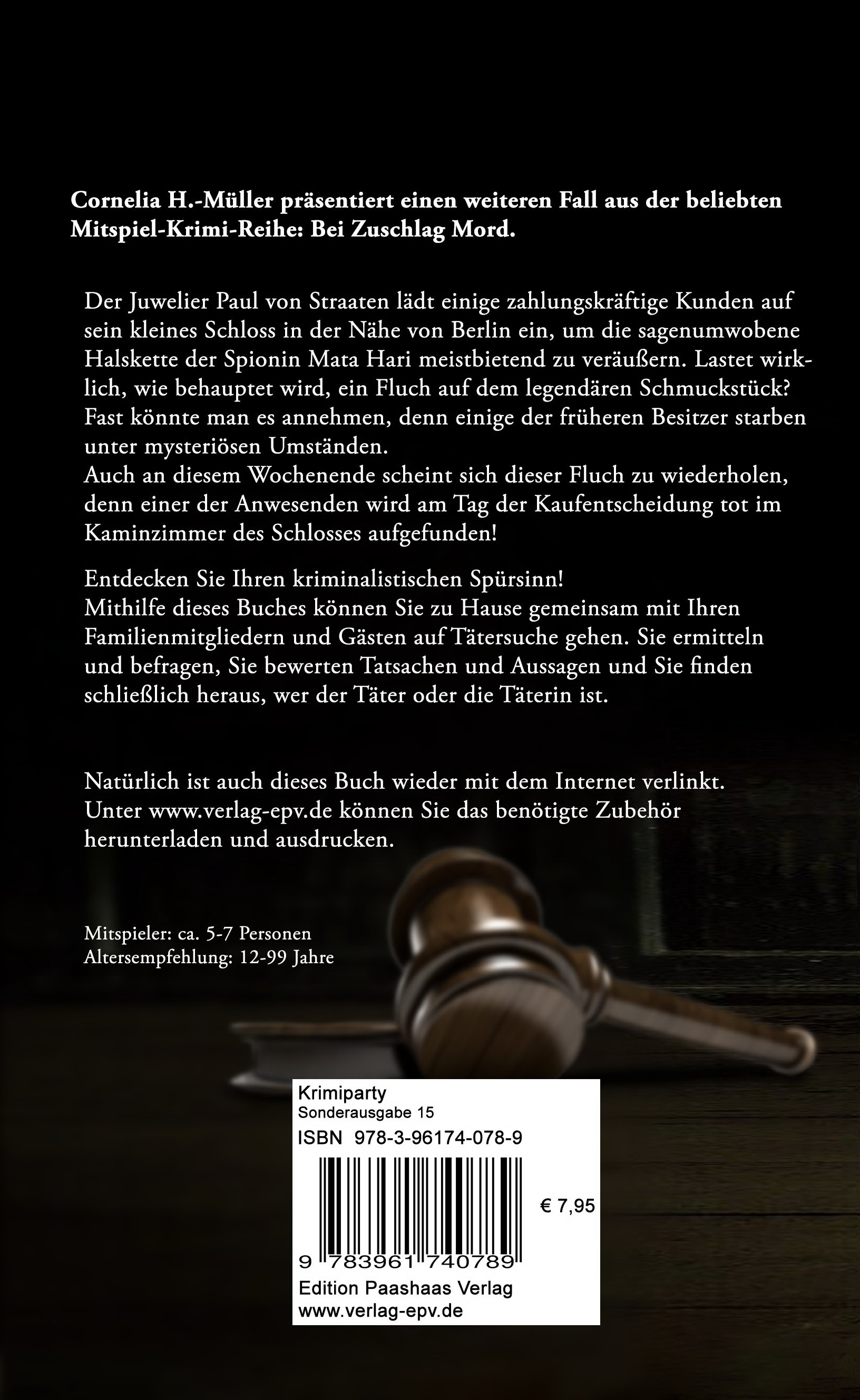Cornelia H.-Müller präsentiert einen weiteren Fall aus der beliebten Mitspiel-Krimi-Reihe: Bei Zuschlag Mord.