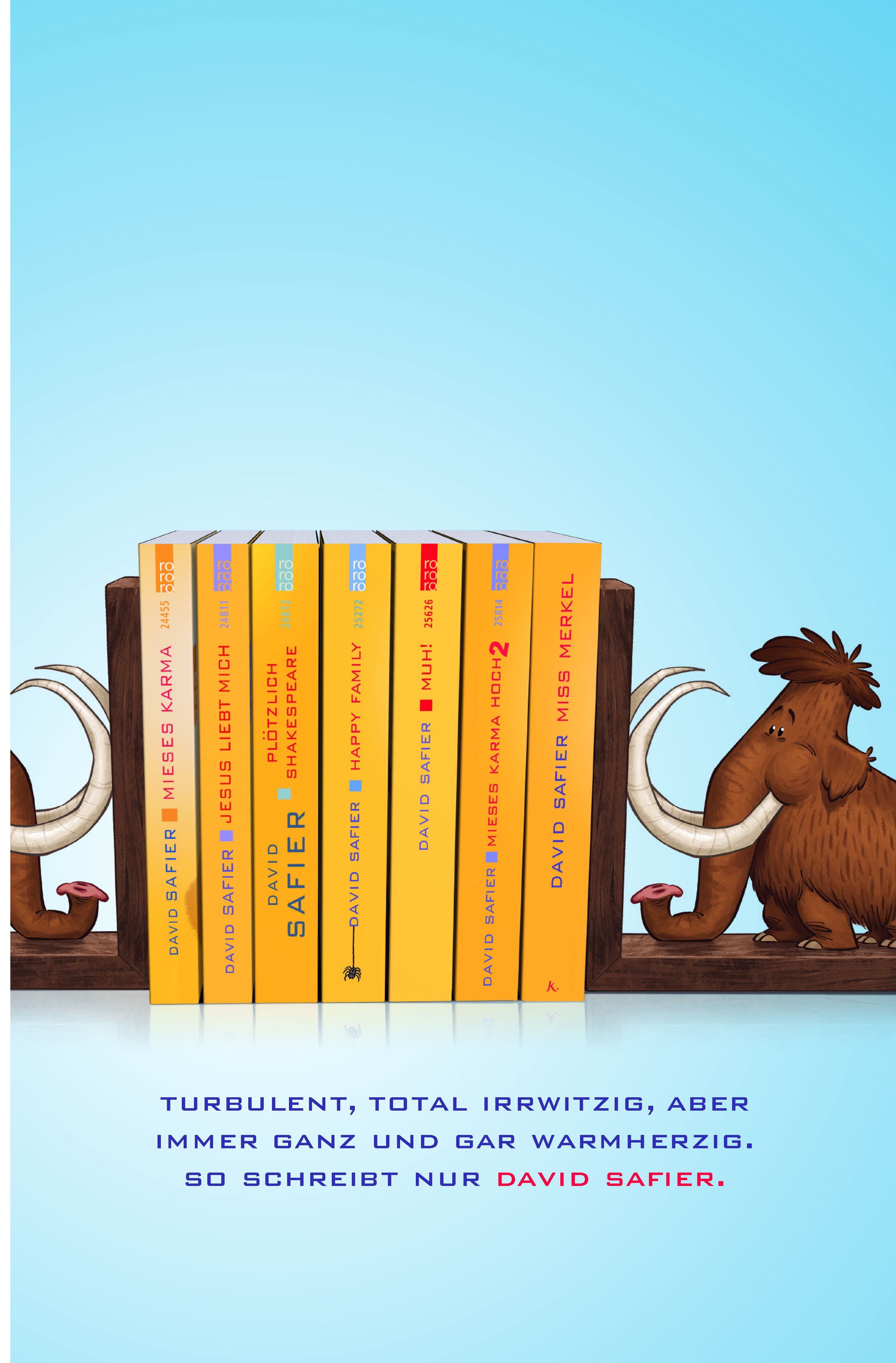 David Safier, 1966 geboren, zählt zu den erfolgreichsten Autoren der letzten Jahre. Seine Romane, darunter «Mieses Karma», «Jesus liebt mich», «Happy Family» und «MUH!» erreichten Millionenauflagen im In- und Ausland. Der erste Band seiner Krimireihe rund um die Ex-Kanzlerin gehört zu den bestverkauften Büchern des Jahres 2021. Als Drehbuchautor wurde David Safier unter anderem mit dem Grimme-Preis sowie dem International Emmy ausgezeichnet. Er lebt und arbeitet in Bremen, ist verheiratet und hat zwei Kinder.