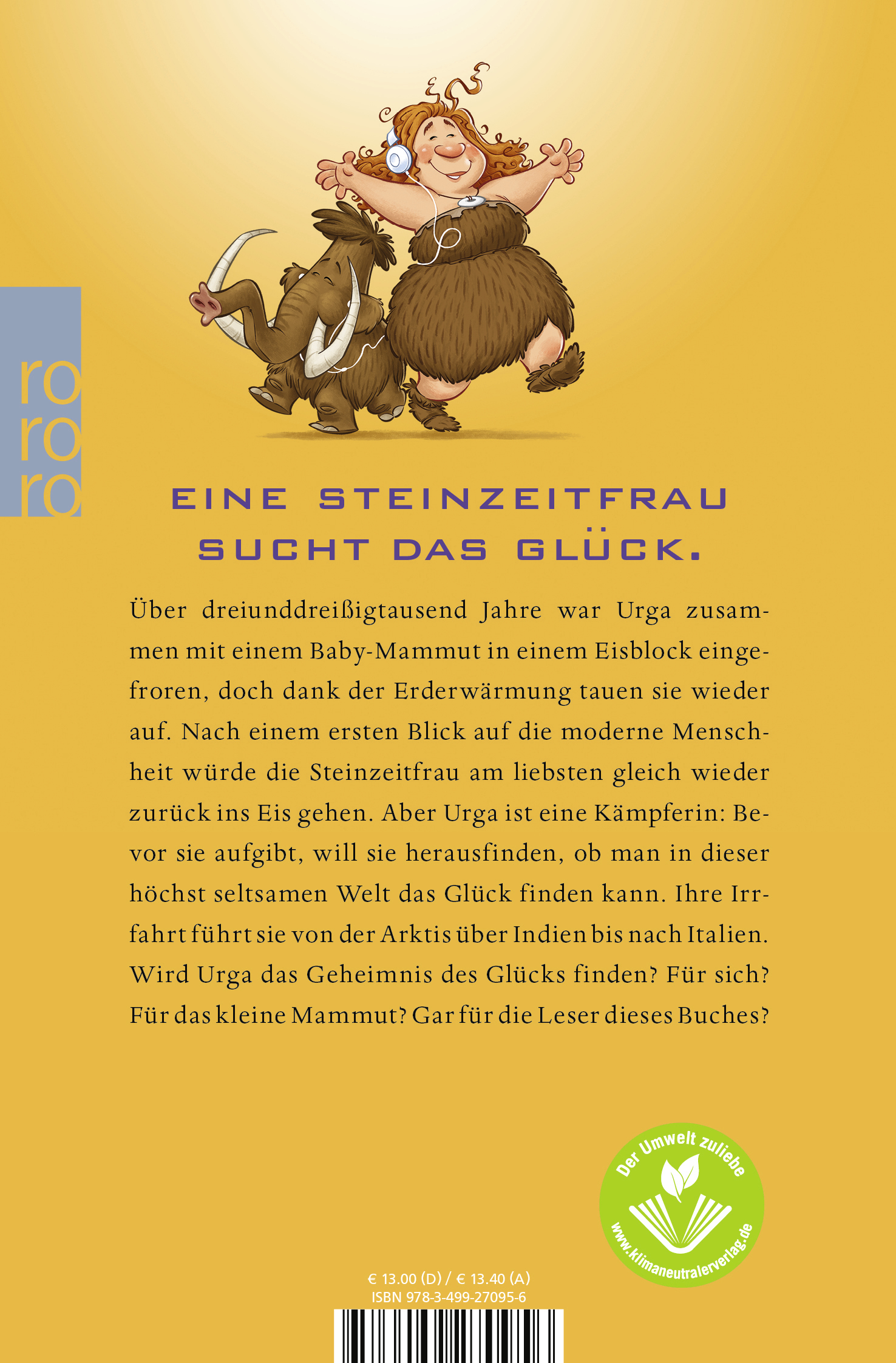 lt;p>Über dreiunddreißigtausend Jahre war Urga zusammen mit einem Baby-Mammut in einem Eisblock eingefroren, doch dank der Erderwärmung tauen sie wieder auf. Nach einem ersten Blick auf die moderne Menschheit würde die Steinzeitfrau am liebsten gleich wieder zurück ins Eis gehen. Aber Urga ist eine Kämpferin: Bevor sie aufgibt, will sie herausfinden, ob man in dieser höchst seltsamen Welt das Glück finden kann. Ihre Irrfahrt führt sie von der Arktis über Indien bis nach Italien. Wird Urga das Geheimnis des Glücks finden? Für sich? Für das kleine Mammut?