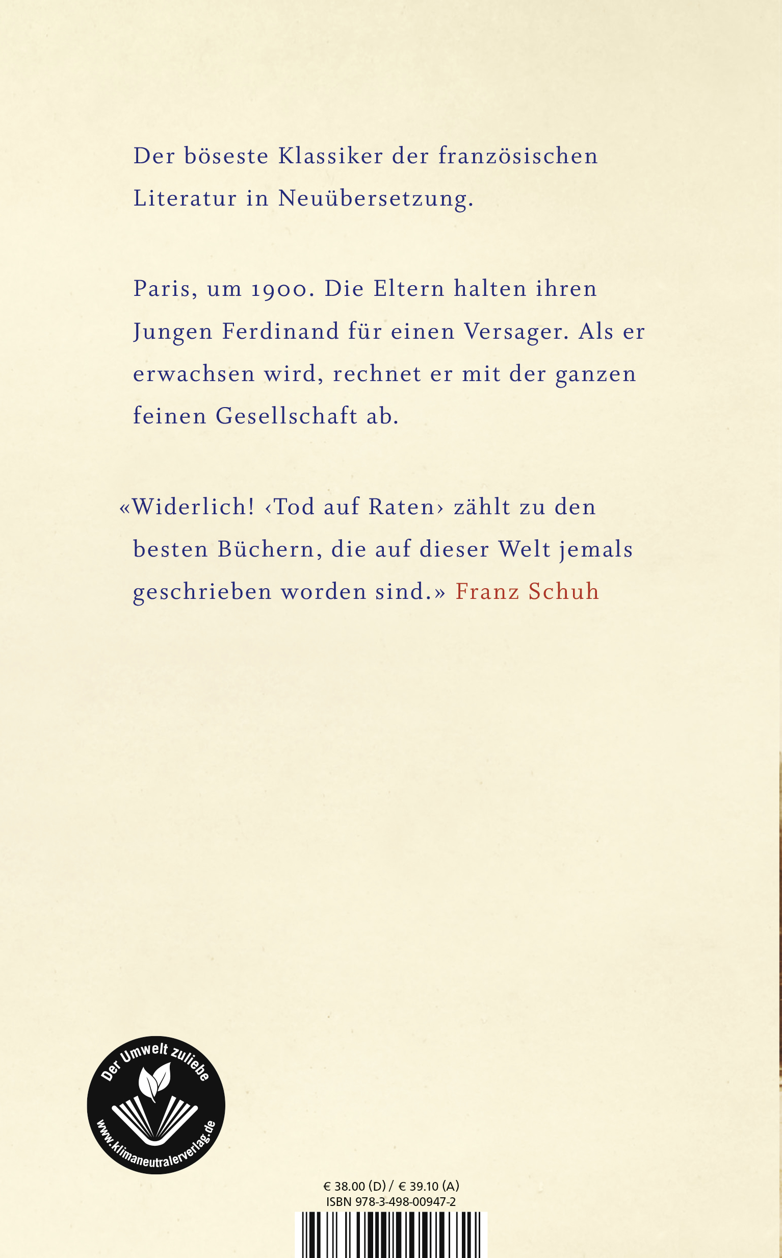 | Schlagworte | Antisemitismus • Familienroman • Französische Literatur • Neuübersetzung • Paris • Reise ans Ende der Nacht |