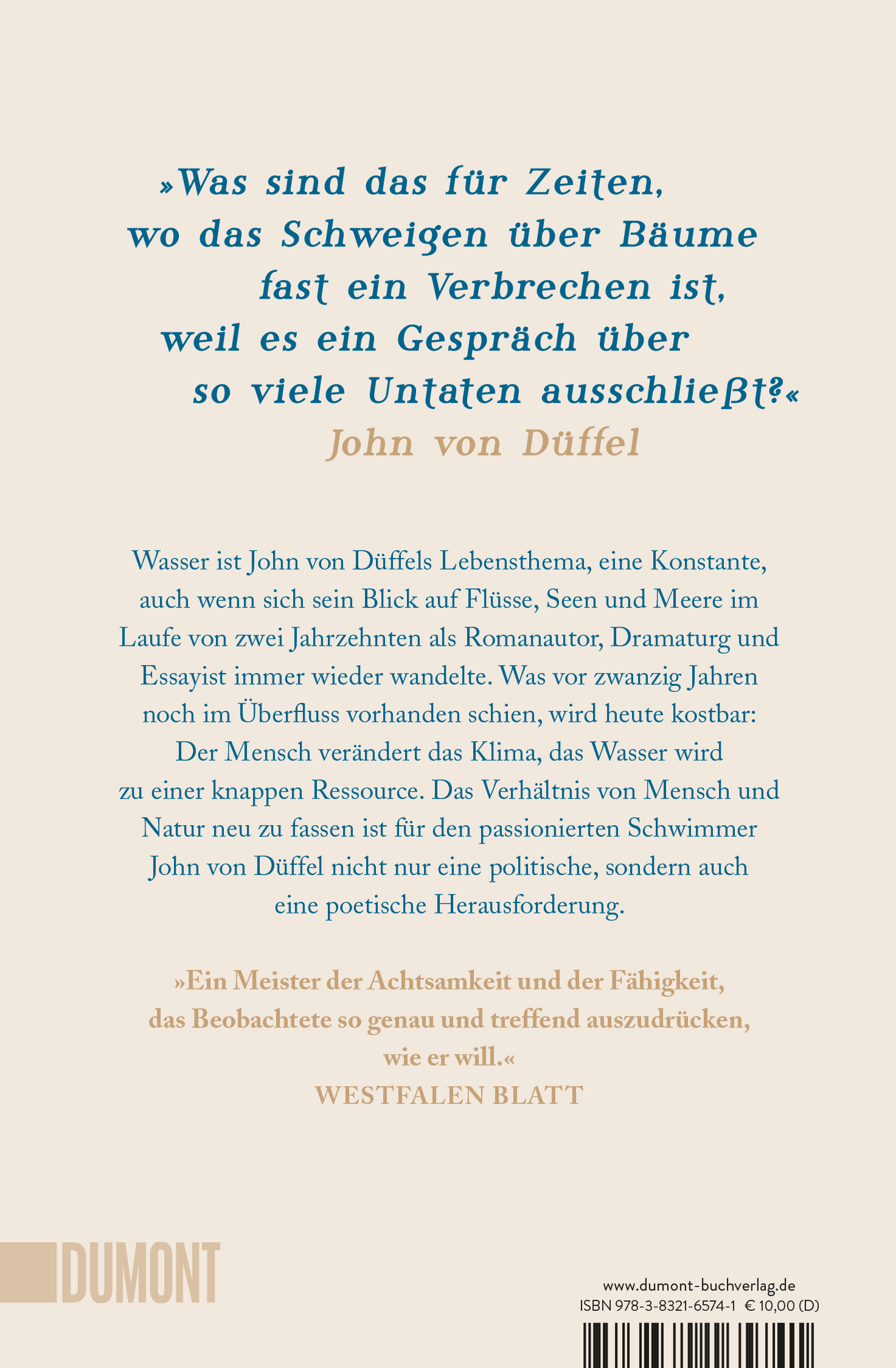 JOHN VON DÜFFEL wurde 1966 in Göttingen geboren, er arbeitet als Dramaturg am Deutschen Theater Berlin und ist Professor für Szenisches Schreiben an der Berliner Universität der Künste. Seit 1998 veröffentlicht er Romane, Erzählungsbände sowie essayistische Texte bei DuMont, u. a. ›Vom Wasser‹ (1998), ›Houwelandt‹ (2004), ›Wassererzählungen‹ (2014), ›Klassenbuch‹ (2017), ›Der brennende See‹ (2020), ›Wasser und andere Welten‹ (Neuausgabe 2021), ›Die Wütenden und die Schuldigen‹ (2021) und zuletzt