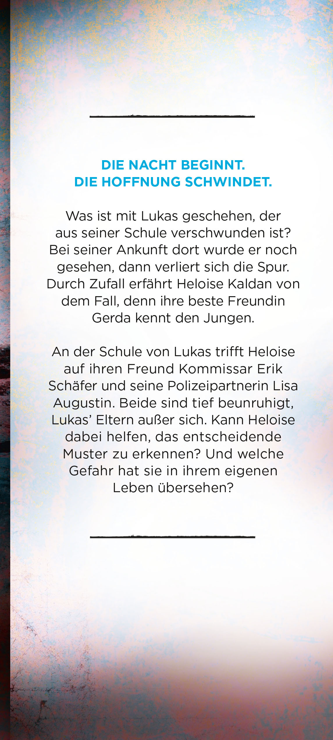 Die Spuren zu dem Jungen sind verwirrend, nichts passt zusammen. Heloise versucht, Erik Schäfer zu helfen, das entscheidende Muster zu erkennen. Und begegnet ihren innersten Dämonen.