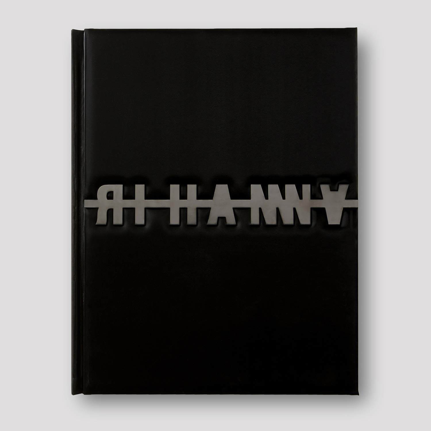 Rihanna: Queen Size is hand-sewn and bound in bespoke padded Japanese-designed fabric with a pearlescent finish, and an embedded, matte black, laser-cut steel logo designed by Barnbrook studio. The endpapers feature a custom design by The Haas Brothers printed in spot gloss on a rich black paper stock. Rihanna's remarkable story unfolds in 504 pages and more than 1,000 images along with gatefolds and special inserts including bound-in booklets, a die-cut tip-in sheet, and a double-sided removable poster.