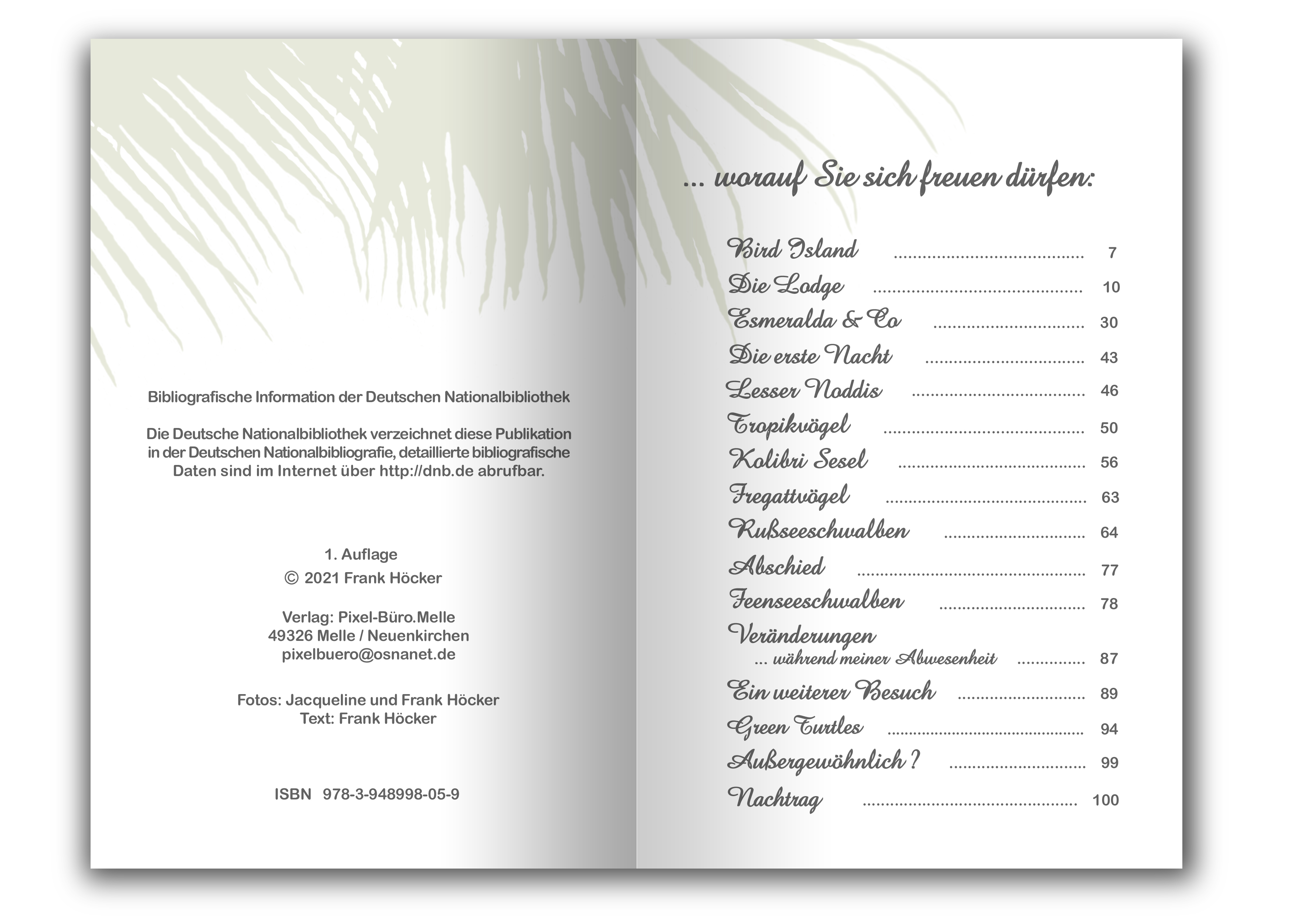 Fakten und Besonderheiten der Insel wurden ebenso in einem humorvollen Reisebericht integriert, wie Eigenarten der Tier- und Vogelwelt. Wieso bauen einige Vögel keine Nester? Warum kann eine andere Vogelart nicht laufen? Und wieso gibt es hier Vögel, die nachts nicht schlafen? Wie gelangen sperrige Versorgungsgüter auf die Insel - obwohl es keinen Schiffsanleger gibt? Inhalte, die in keinem Reiseführer erwähnt werden. Hier sind sie - informativ und kurzweilig. Und auch sehr persönlich ...!
