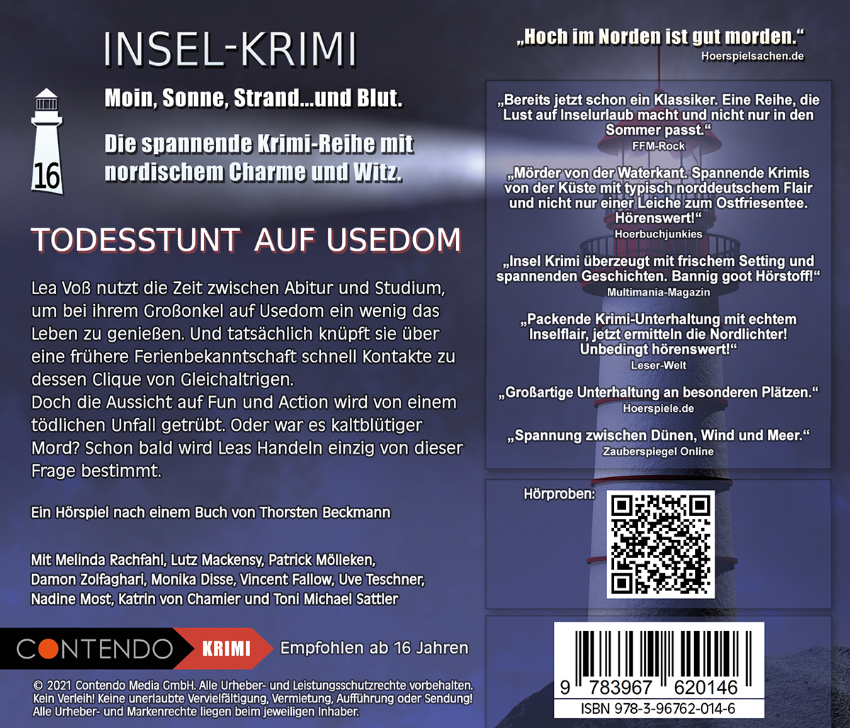 Lea Voß nutzt die Zeit zwischen Abitur und Studium, um bei ihrem Großonkel auf Usedom ein wenig das Leben zu genießen. Und tatsächlich knüpft sie über eine frühere Ferienbekanntschaft schnell Kontakte zu dessen Clique von Gleichaltrigen. Doch die Aussicht auf Fun und Action wird von einem tödlichen Unfall getrübt. Oder war es kaltblütiger Mord? Schon bald wird Leas Handeln einzig von dieser Frage bestimmt.Lassen Sie sich fesseln vom norddeutschen Charme, frechem Humor, bekannten Synchronstimmen, orchestralem Soundtrack und realistischen Sounds.Ein einmaliges Hörspiel-Erlebnis in seiner schönsten Form!- Sprecher: Lea Voß - Melinda Rachfahl, Raik Ahlers - Lutz Mackensy, Jonas Fricke - Patrick Mölleken, Luke Wendt - Damon Zolfaghari, Anke Fischer - Monika Disse, Konrad Resch - Vincent Fallow, Harro Decker - Uve Teschner, Caroline Decker - Nadine Most, Diana Voß - Katrin von Chamier, Tomasz Kowalczyk - Toni Michael Sattler