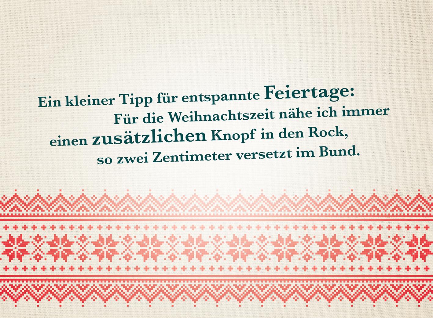 »So gibt es jeden Tag einen pfiffigen Spruch, der Sie heiter durch den Feiertagsstress bringt und Ihnen ein kleines Schmunzeln entlockt.« Vivat! 20211201