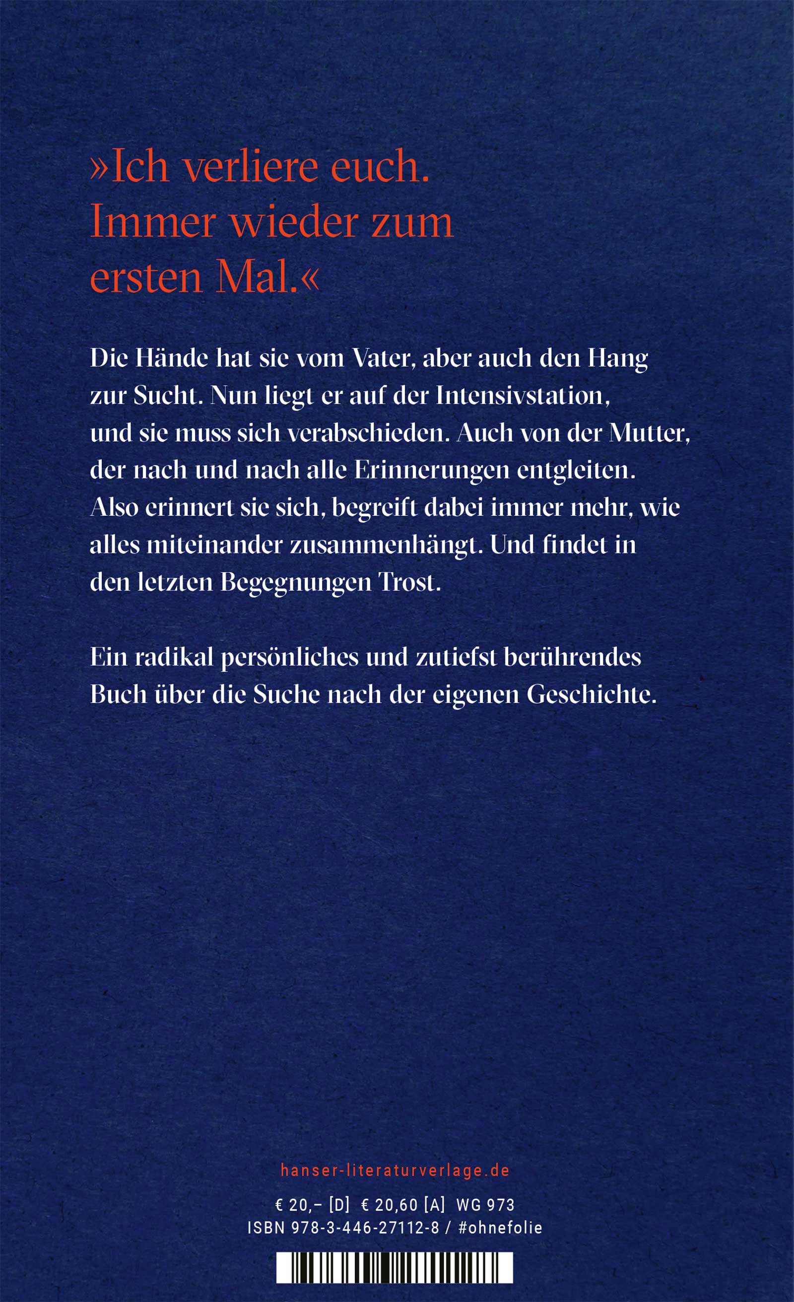 | Schlagworte | Abschied • Alkoholsucht • alleinerziehend • Alzheimer • Autobiographisch • Autofiktion • Barthes • Care • Corona • Covid • Demenz • Eltern • Essay • Familie • Fotografie • Fürsorge • Intensivstation • Kind • Kindheit • Krankenhaus • Krankheit • Krebs • Kümmern • Leben • Loslassen • #ohnefolie • ohnefolie • Pflege • Pflegeheim • Roland • sontag • Sterben • Susan • Tochter • Trost • Überforderung • Vergangenheit • Vergänglichkeit • Weiblich • würdevoll |