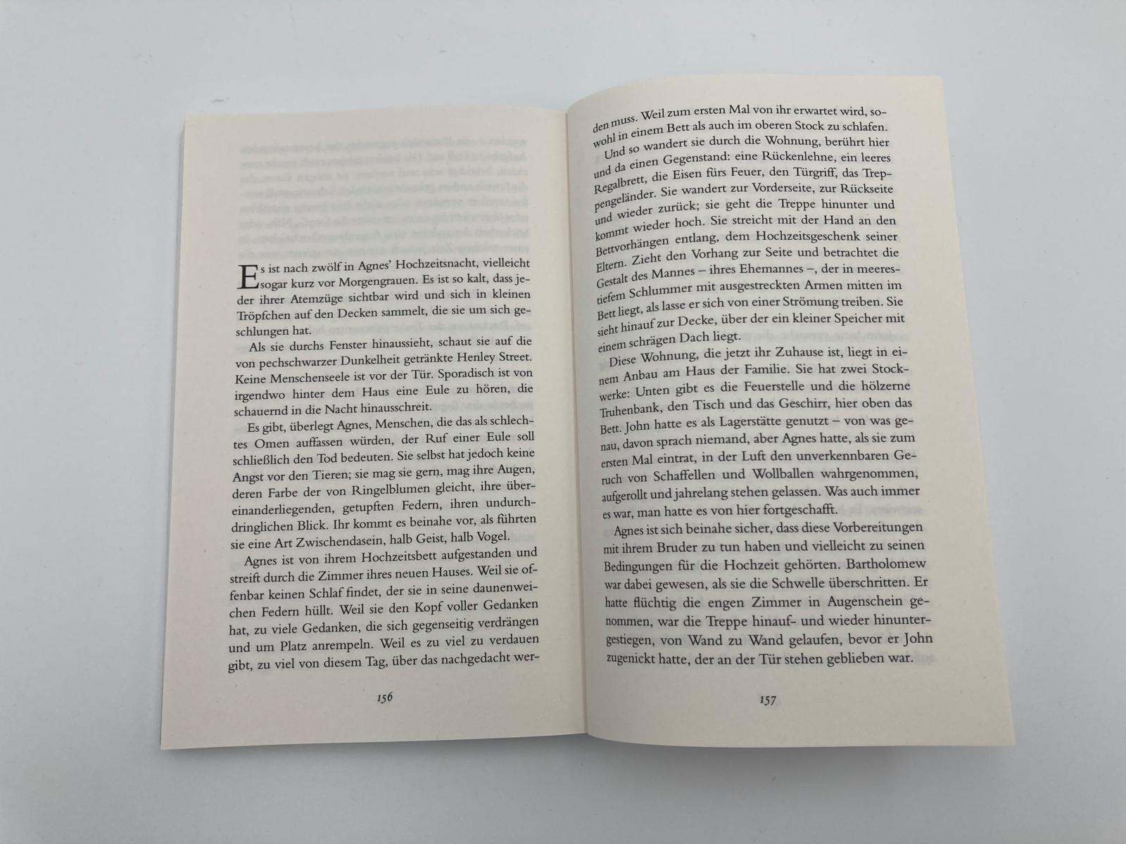 Agnes sieht ihn und weiß: Das wird er sein. Dabei ist der schmächtige Lateinlehrer aus Stratford-upon-Avon noch nicht einmal achtzehn. Egal, besser, sie küsst ihn schnell. Besser, sie erwartet ein Kind, bevor ihr einer die Heirat verbieten kann. Vierzehn Jahre später sind es drei Kinder geworden. Doch wie sollen sie auskommen, solange ihr Mann wer weiß was mit diesen Theaterstücken treibt? Er ist in London, als der elfjährige Hamnet die Beulen am Hals seiner Zwillingsschwester Judith ertastet. Als Agnes im Blick ihres Sohnes den Schwarzen Tod erkennt.
