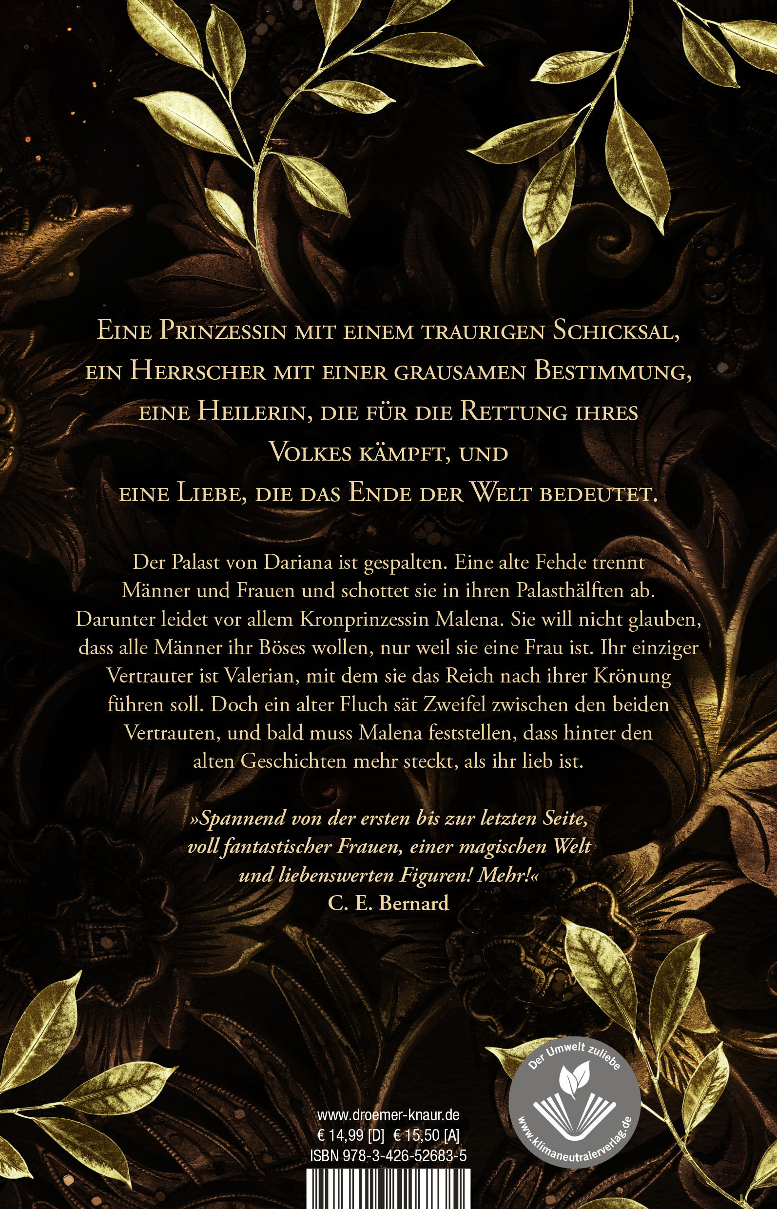 Seither ist der Palast gespalten, Männer und Frauen leben getrennt. Darunter leidet vor allem Kronprinzessin Malena. Sie will nicht glauben, dass alle Männer ihr Böses wollen, nur weil sie eine Frau ist. Ihr sehnlichster Wunsch ist es, den Palast zu einen – und dabei ihre frisch entdeckten Gefühle für den Krieger Aries zu erkunden.