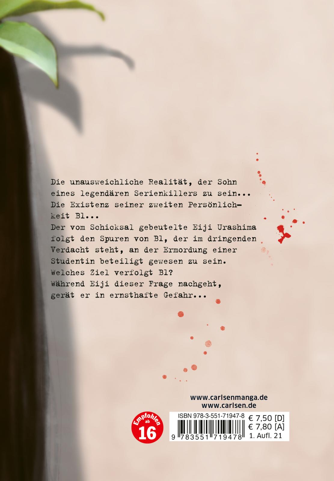 | Schlagworte | Amnesie • Blut • Death Note • Gedächtnisverlust • Gewalt • Horror Thriller Manga • Identitätsstörung • Japanische Leserichtung • Krimi • Manga Buch Horror • Manga Psycho Thriller • Monster • Mörder • Psychothriller • spannend • Thriller • Tokyo Ghoul • verstörend • Waffen |