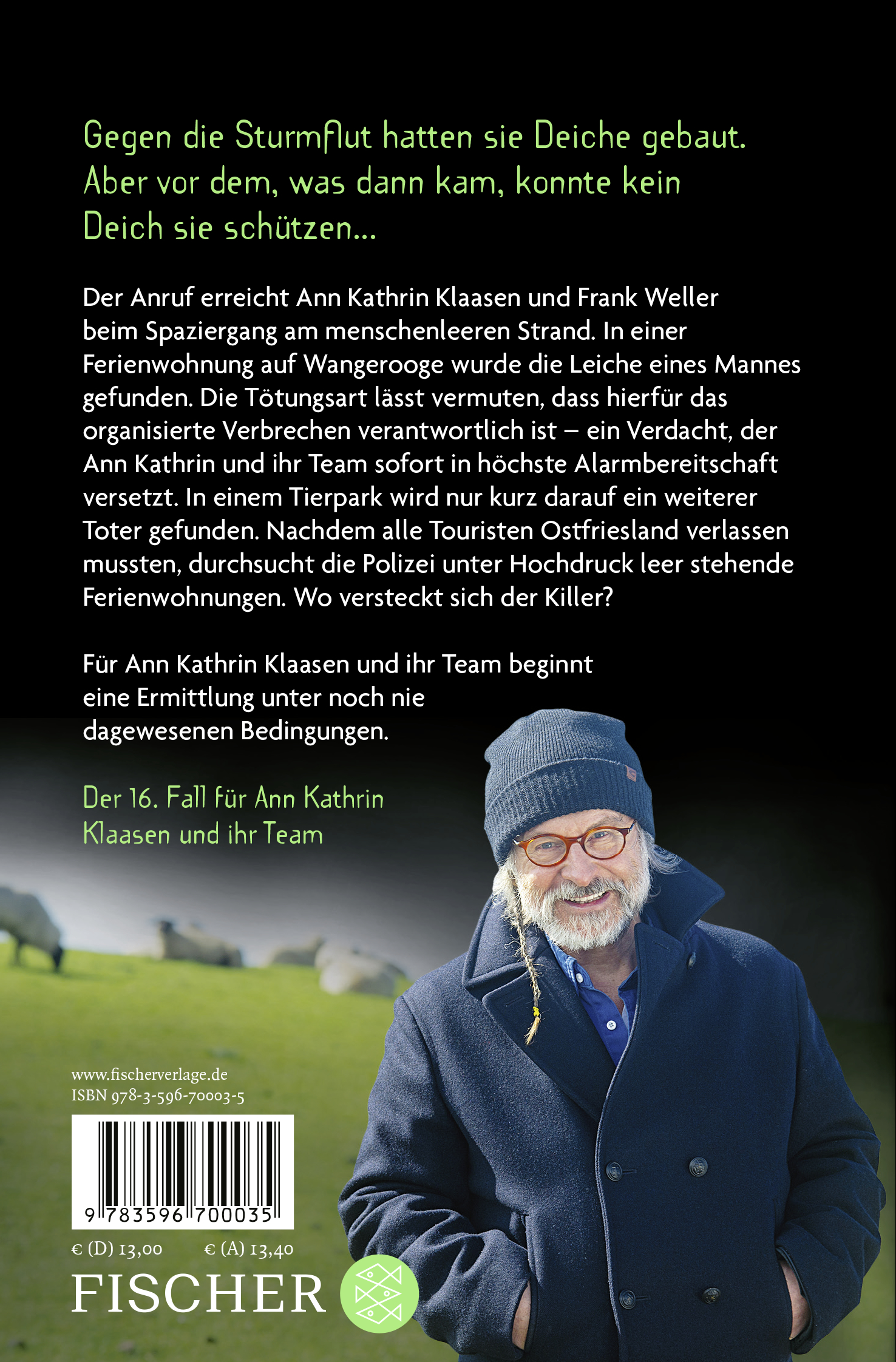 Klaus-Peter Wolf, 1954 in Gelsenkirchen geboren, lebt als freier Schriftsteller in der ostfriesischen Stadt Norden, im selben Viertel wie seine Kommissarin Ann Kathrin Klaasen. Wie sie ist er nach langen Jahren im Ruhrgebiet, im Westerwald und in Köln an die Küste gezogen und Wahl-Ostfriese geworden. Seine Bücher und Filme wurden mit zahlreichen Preisen ausgezeichnet. Bislang sind seine Bücher in 26 Sprachen übersetzt und über dreizehn Millionen Mal verkauft worden. Mehr als 60 seiner Drehbücher wurden verfilmt, darunter viele für »Tatort« und »Polizeiruf 110«. Der Autor ist Mitglied im PEN-Zentrum Deutschland.Die Romane seiner Serie mit Hauptkommissarin Ann Kathrin Klaasen stehen regelmäßig mehrere Wochen auf Platz 1 der Spiegel-Bestsellerliste, derzeit werden einige Bücher der Serie prominent fürs ZDF verfilmt und begeistern Millionen von Zuschauern.