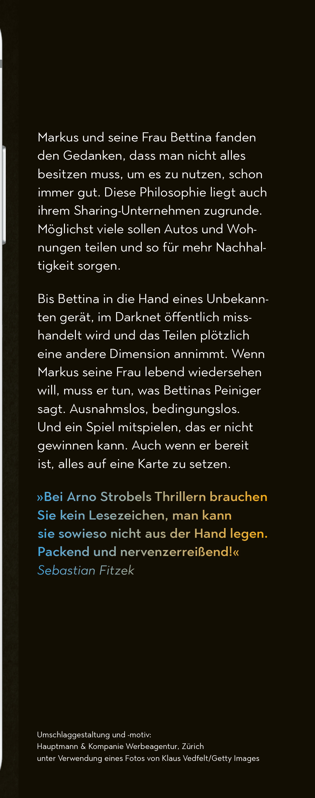 Du glaubst an die Idee der gemeinsamen Nutzung. Aber was, wenn du gezwungen wirst, den Menschen zu »teilen«, der dir am nächsten steht? Der neue Psycho-Thriller von Nr.1-Bestseller-Autor Arno Strobel.