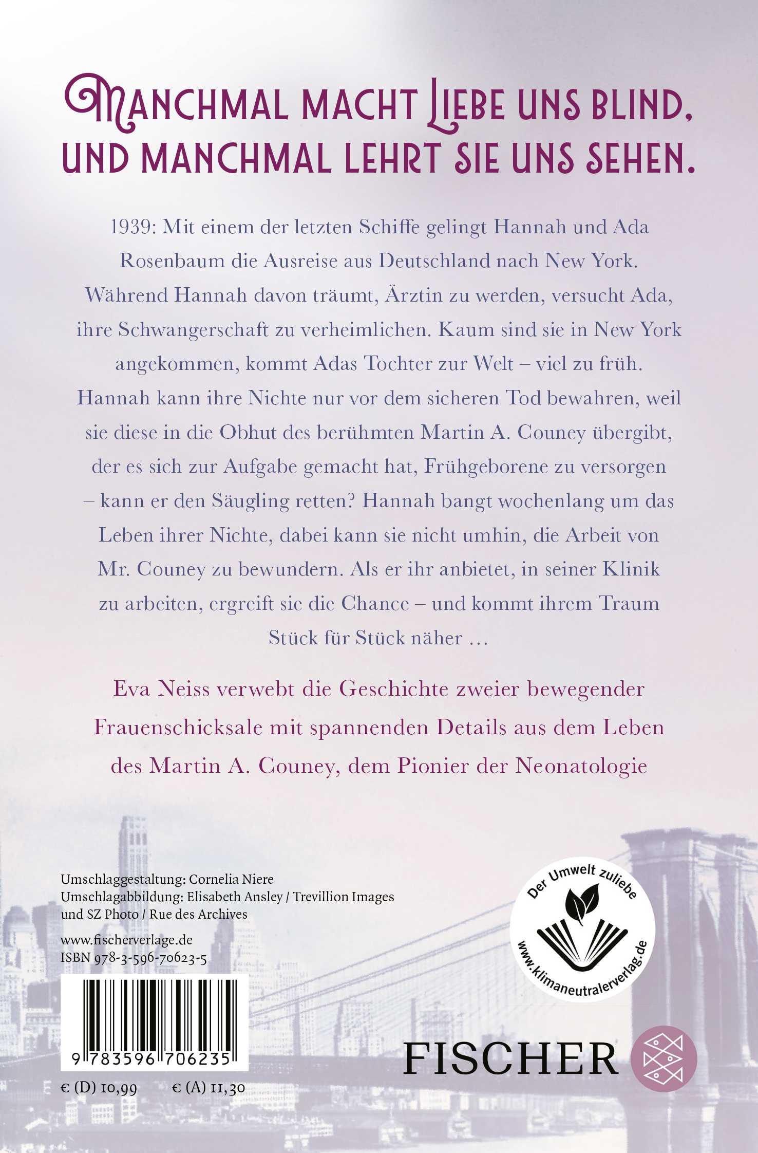 Kaum sind sie in New York angekommen, kommt Adas Tochter zur Welt – viel zu früh. Hannah kann ihre Nichte nur vor dem sicheren Tod bewahren, weil sie diese in die Obhut des berühmten Martin A. Couney übergibt, der es sich zur Aufgabe gemacht hat, Frühgeborene zu versorgen – ein umstrittenes Unterfangen.
