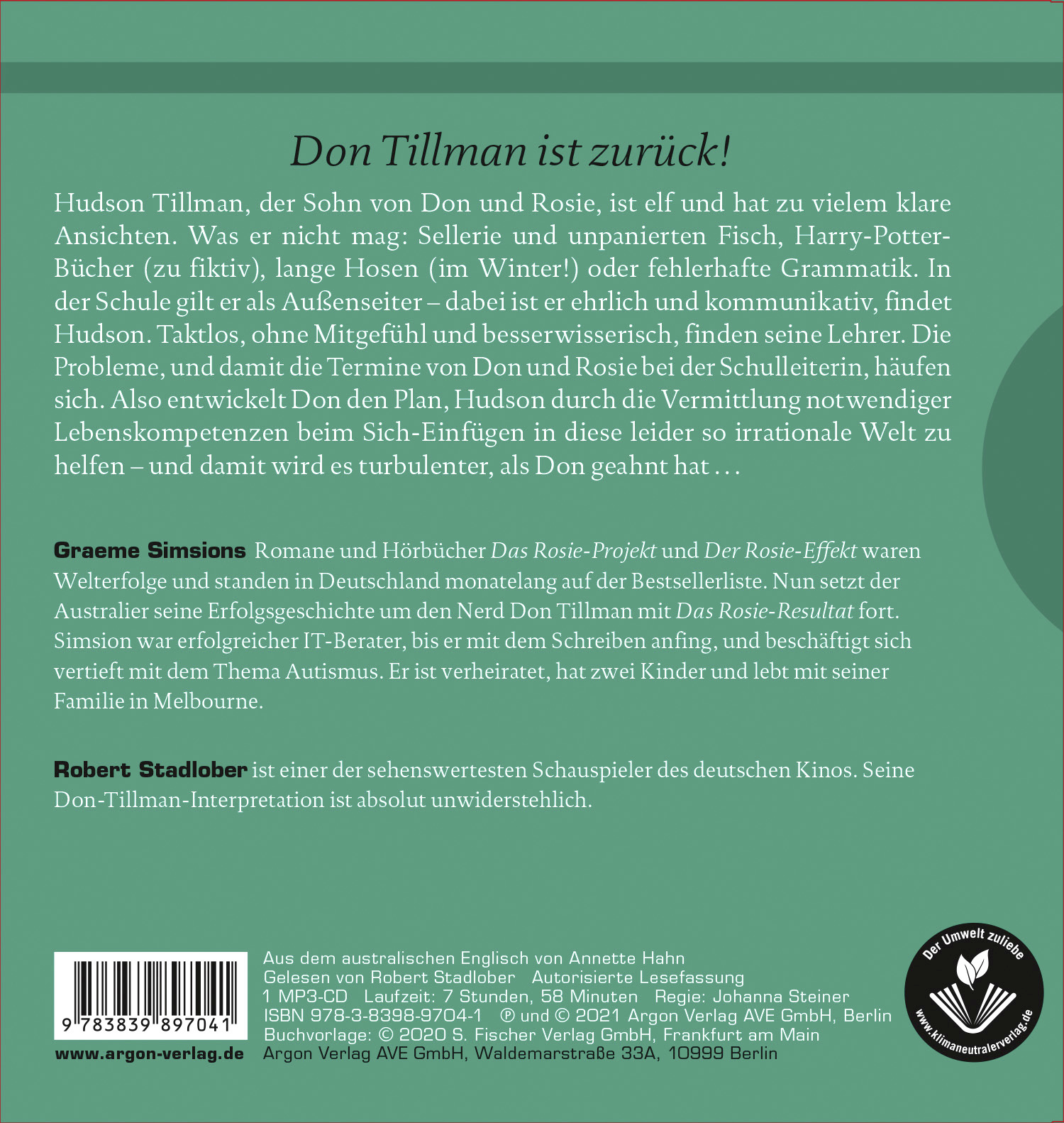 | Schlagworte | Anders sein • Asperger • Asperger-Syndrom • Australien • Autismus • Don Tillman • Entwicklunsroman • Mental Health • Psychische Gesundheit • Rosie Effekt • Rosie Projekt • Selbstfindung • Toleranz • Vater-Sohn-Beziehung |