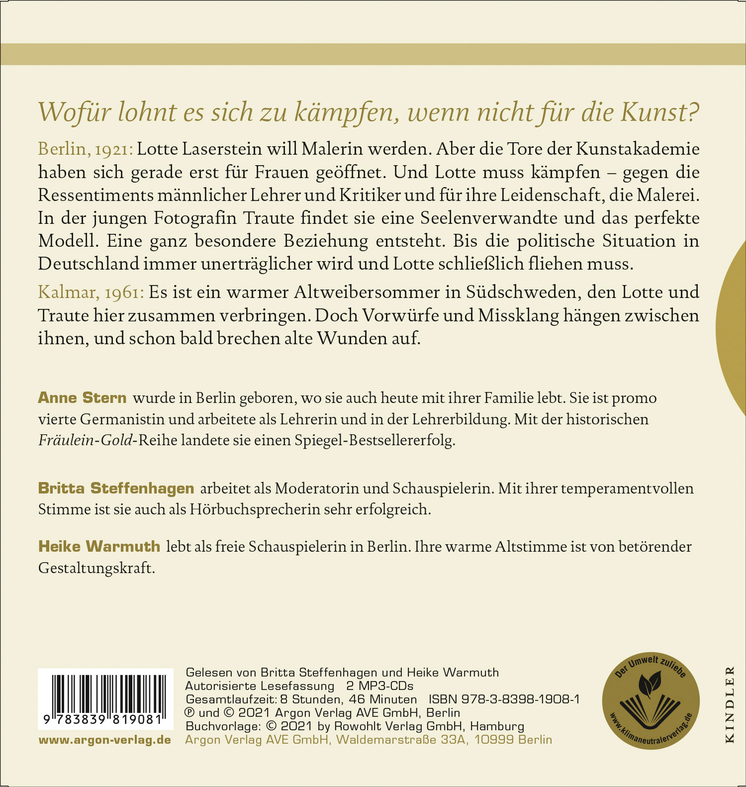 Ein ergreifender Roman über die Berliner Malerin Lotte Laserstein und ihr Lieblingsmodell Traute Rose – zwei starke Frauen im Kampf um ihre Träume, ihre Kunst und die persönliche Freiheit. SPIEGEL-Bestsellerautorin Anne Stern erzählt von einer beeindruckenden Freundschaft in einem Jahrhundert der Umbrüche und Katastrophen.