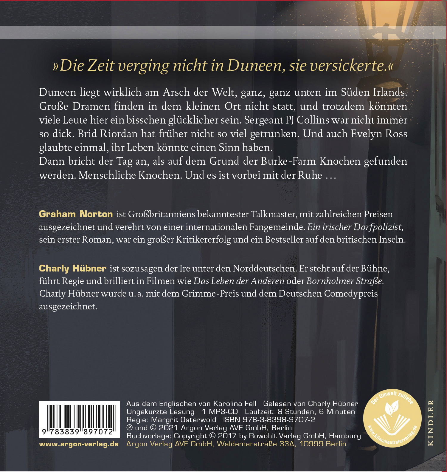 Graham Norton, Schauspieler, Comedian und Talkmaster, ist eine der bekanntesten Fernsehpersönlichkeiten der englischsprachigen Welt. Geboren wurde er in Clondalkin, einem Vorort von Dublin, aufgewachsen ist der Sohn einer protestantischen Familie aber im County Cork im Süden Irlands. Sein erster Roman Ein irischer Dorfpolizist überraschte viele durch seine Wärme und erzählerische Qualität, er avancierte in Irland und Großbritannien zum Bestseller, wurde mit dem Irish Book Award 2016 ausgezeichnet und wird nun auch zu einer Fernsehserie.