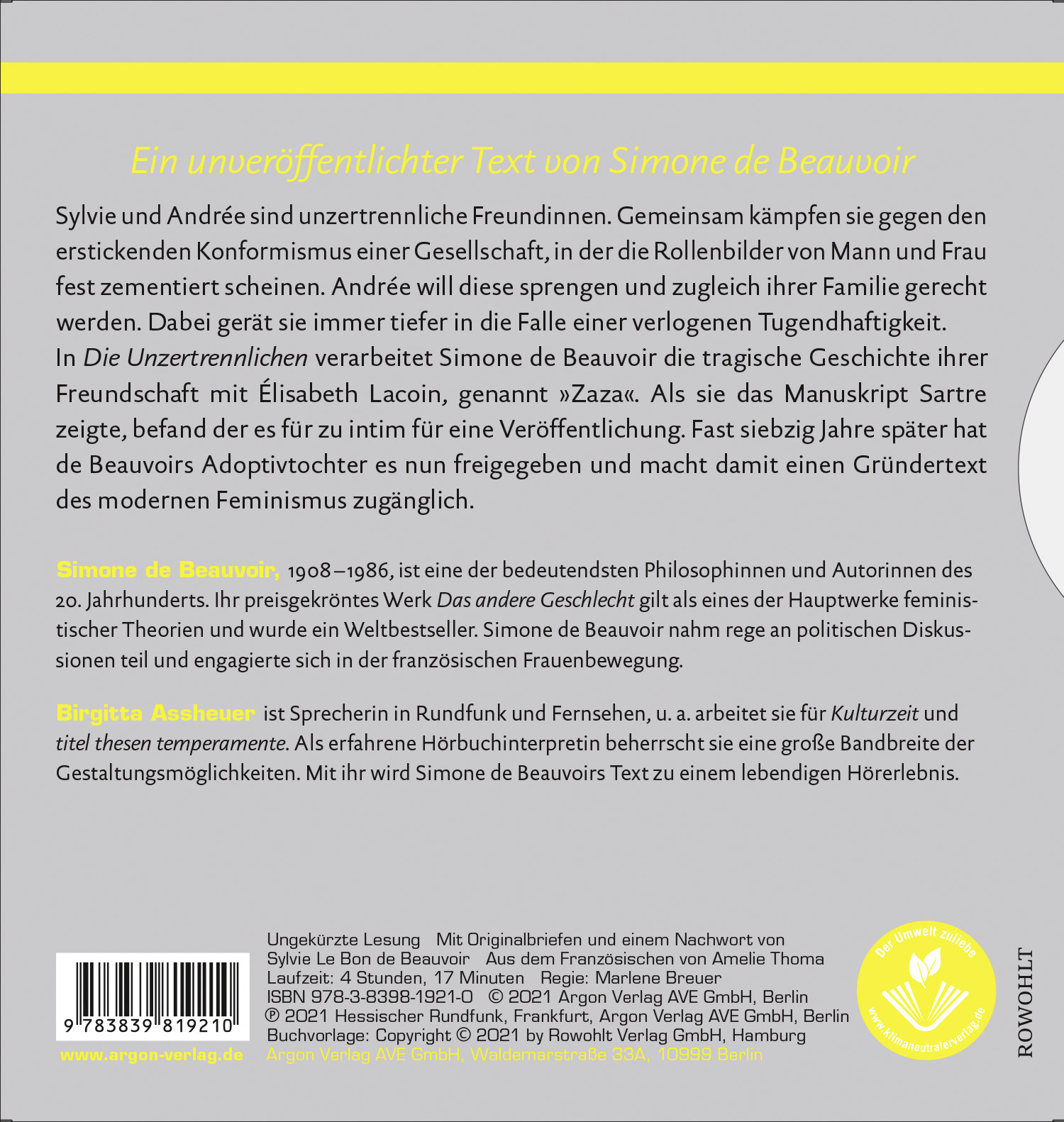 | Schlagworte | 20er Jahre • Erste Liebe • Feminismus • Frauenfreundschaft • Heranwachsen • Ikone • Jugendliebe • Jugendroman • Modernes Leben • Paris • Rebellin • Sexismus • Simone de Beauvoir |