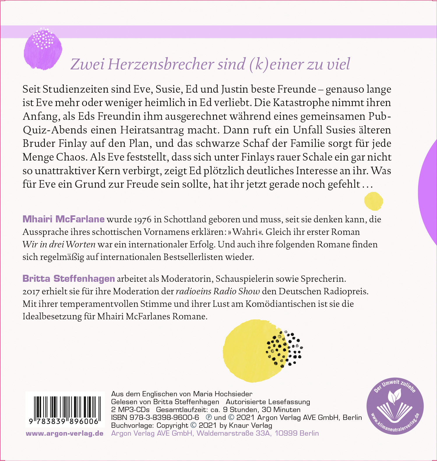 | Schlagworte | Britische Liebesgeschichte • Britischer Humor • Freundschaft • Großbritanien • Heiratsantrag • Kneipenquiz • Liebesroman • Quiz • Romantic Comedy • Unfall • Wiedersehen |