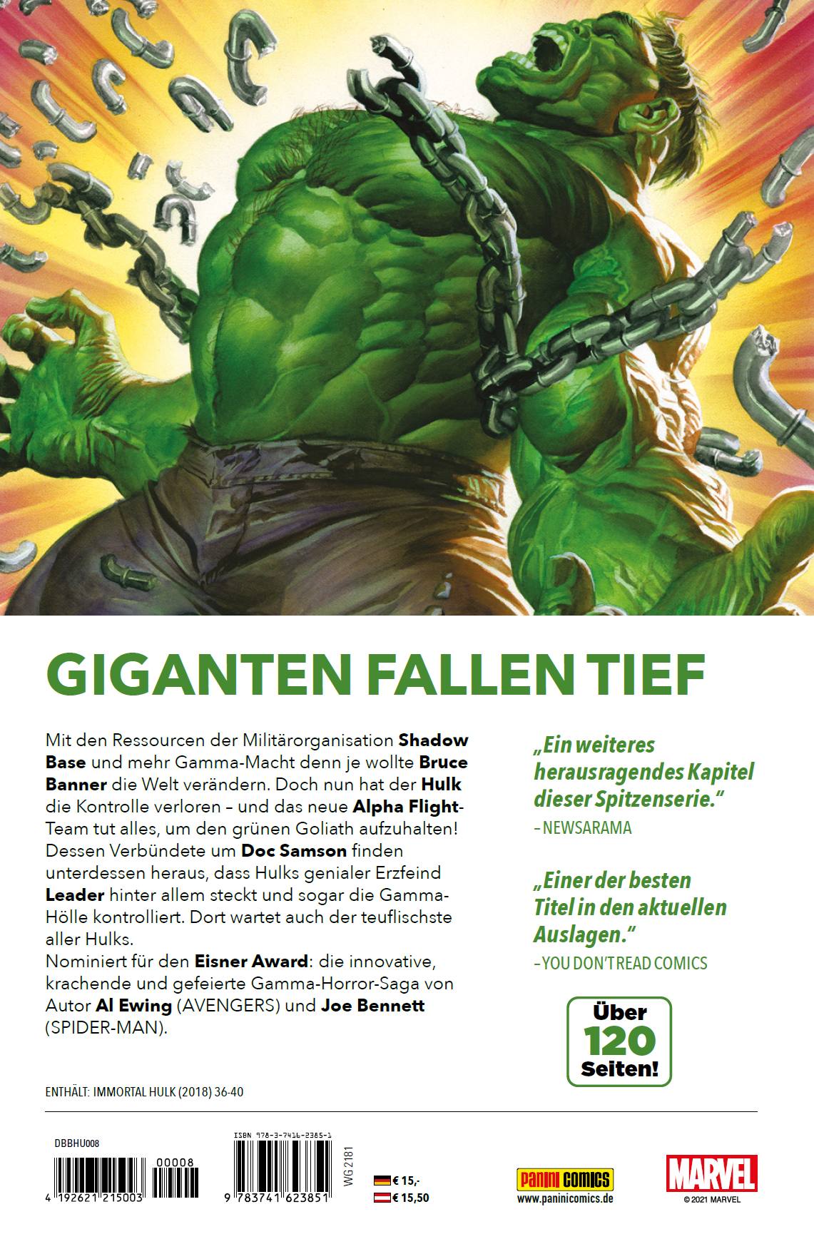 | Schlagworte | Alpha Flight-Team • Bruce Banner • Comic • Comics • Doc Samson • Eisner Award • H2021 • H21 • Herbst2021 • Herbst21 • Hulk • Immortal Hulk • Leader • Marvel • Marvel-Held • Marvel-Helden • Marvel Superheld • Marvel-Superheld • Paninicomics • Panini Comics • Shadow Base • Superheld • Superhelden |