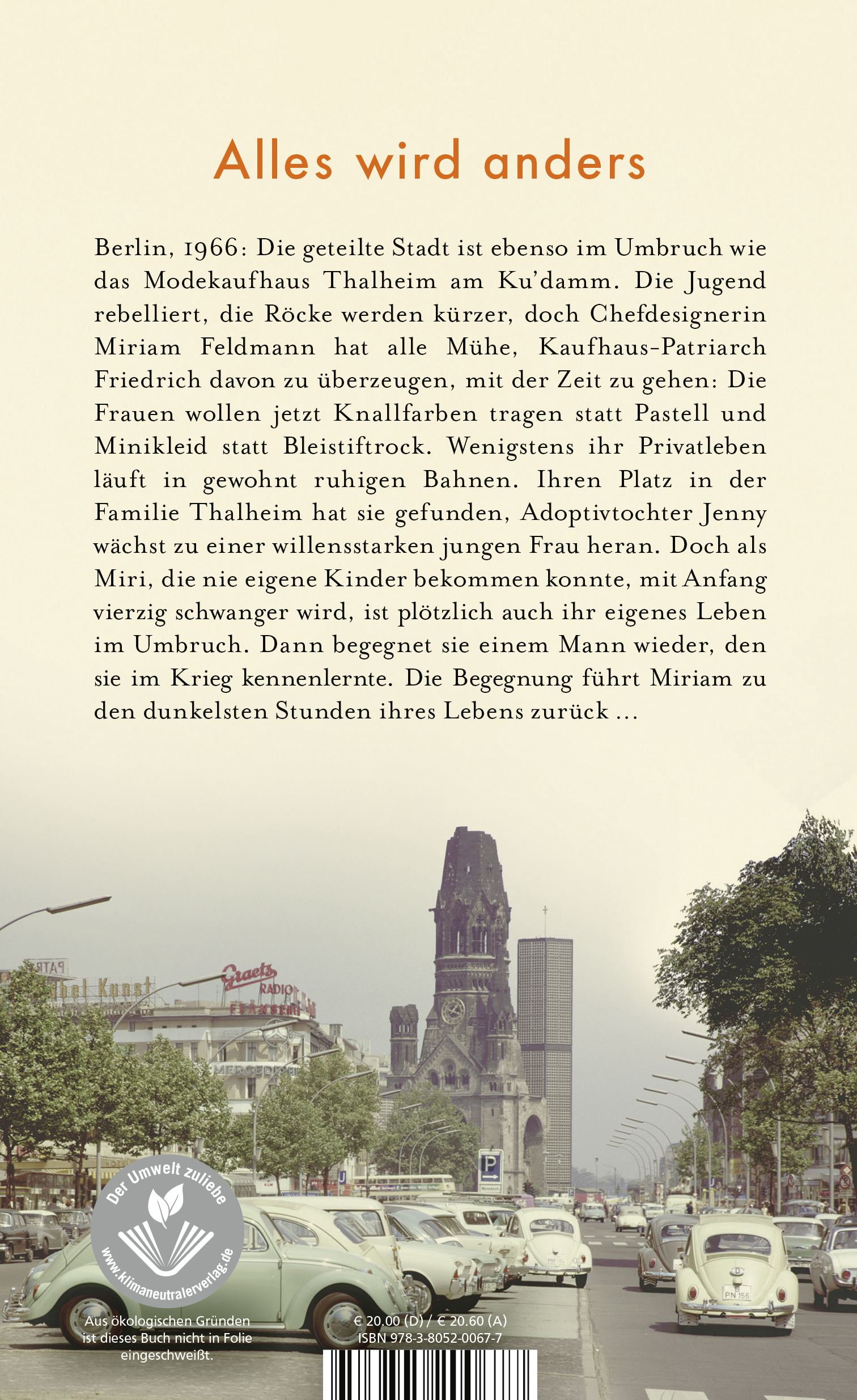 Berlin, 1966: Die geteilte Stadt ist ebenso im Umbruch wie das Modekaufhaus Thalheim am Ku′damm. Die Jugend rebelliert, die Röcke werden kürzer, doch Chef-Designerin Miriam Feldmann hat alle Mühe, Kaufhaus-Patriarch Friedrich davon zu überzeugen, dass die Frauen nun Knallfarben statt Pastell tragen wollen.