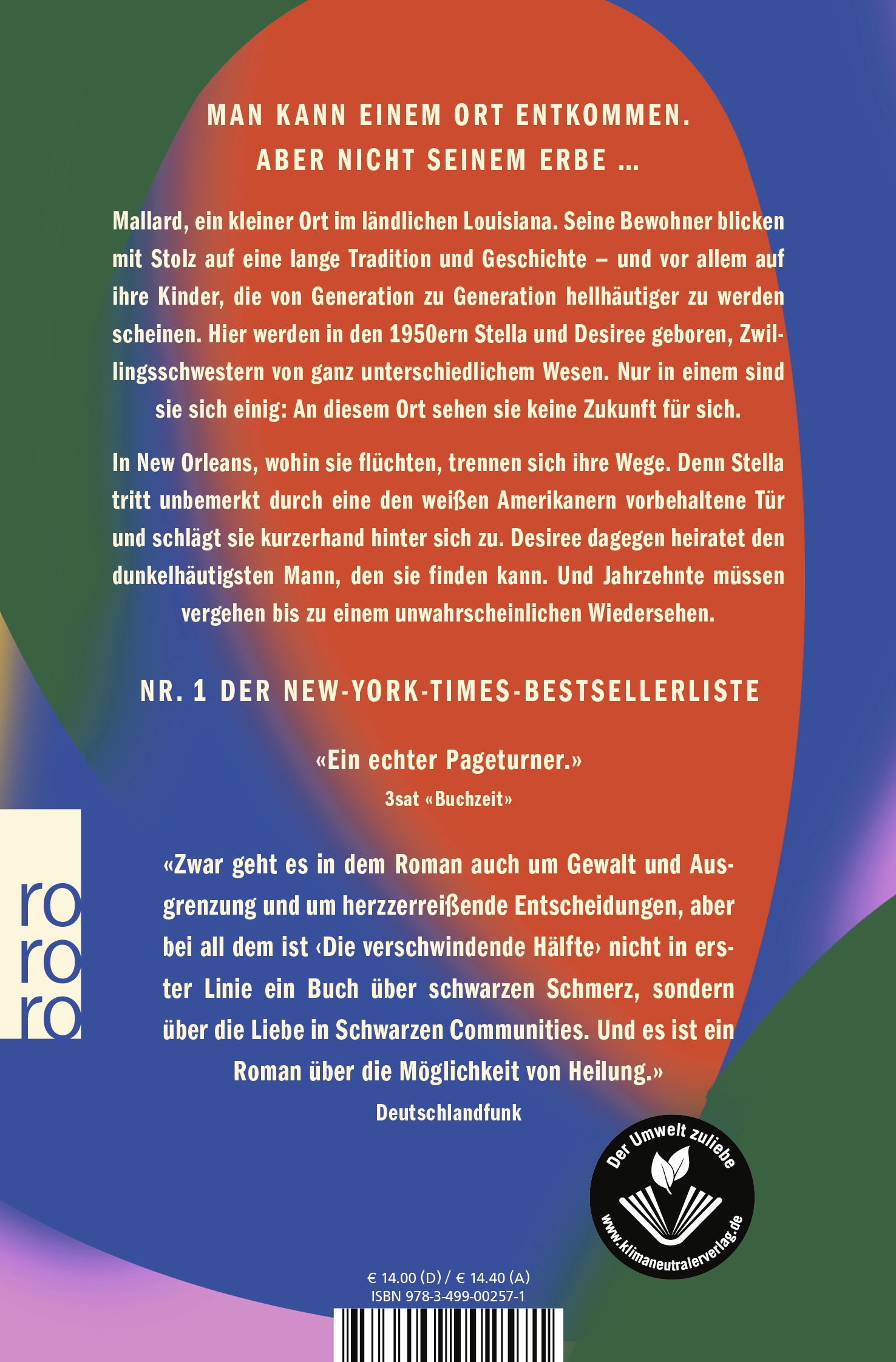 "Die verschwindende Hälfte" von Brit Bennett erzählt eine absolut universelle, zeitlose Geschichte - eine Geschichte darüber, was es bedeutet, aufzuwachsen, sich selbst zu definieren und neu zu erfinden. Es ist auch eine zutiefst amerikanische Geschichte, die sich rigoros mit der rassistischen Vergangenheit und Gegenwart des Landes auseinandersetzt und gleichzeitig dessen Grundwerte hinterfragt. Ein vollendeter, bewegender Roman.