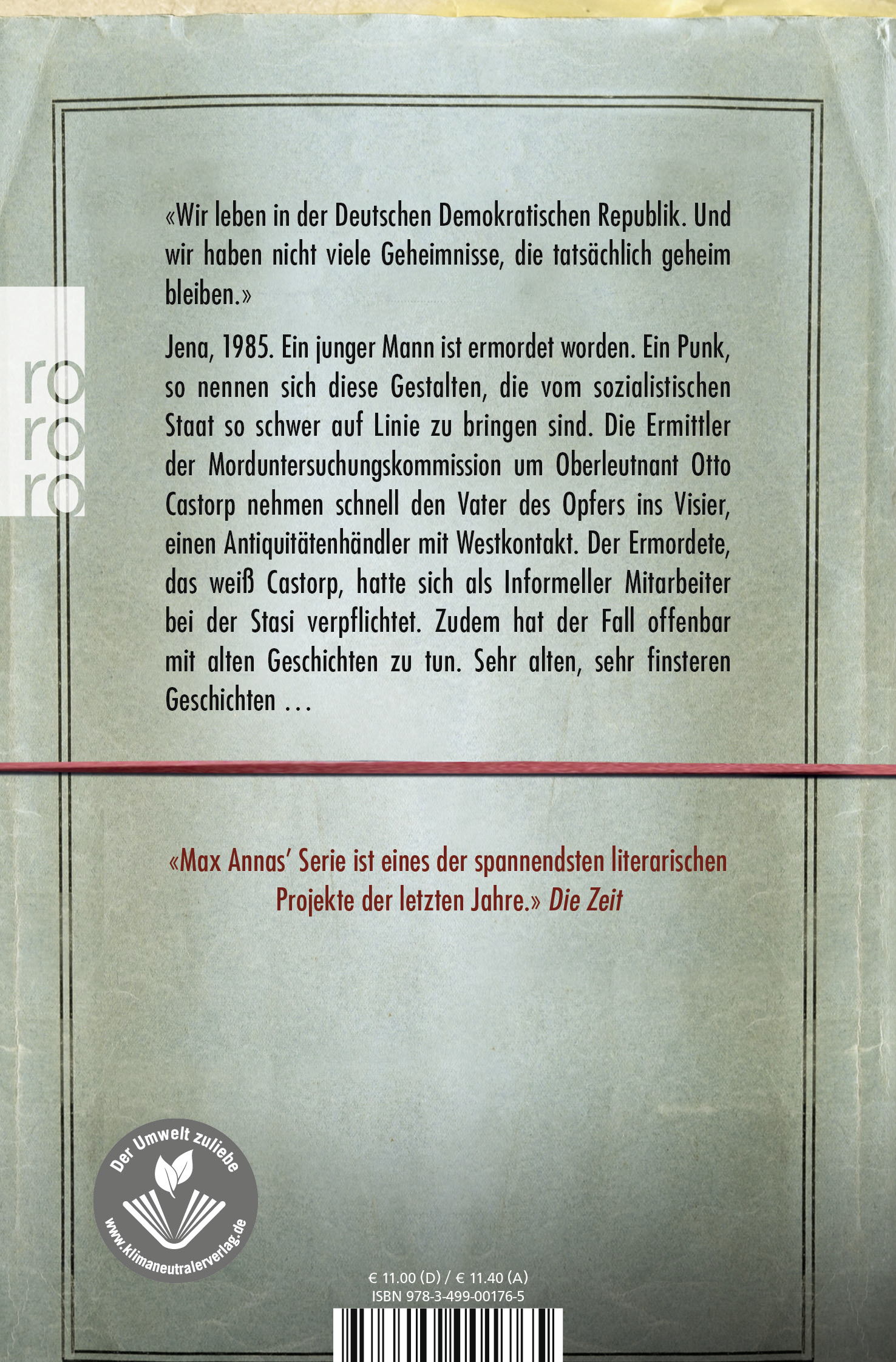 lt;p>Jena, 1985. Ein junger Mann ist ermordet worden. Ein Punk, so nennen sich diese Gestalten, die vom sozialistischen Staat so schwer auf Linie zu bringen sind. Die Ermittler der Morduntersuchungskommission um Oberleutnant Otto Castorp nehmen schnell den Vater des Opfers ins Visier, einen Antiquitätenhändler mit Westkontakt. Der Ermordete, das weiß Castorp, hatte sich als Informeller Mitarbeiter bei der Stasi verpflichtet. Zudem hat der Fall offenbar mit alten Geschichten zu tun. Sehr alten, sehr finsteren Geschichten ...
