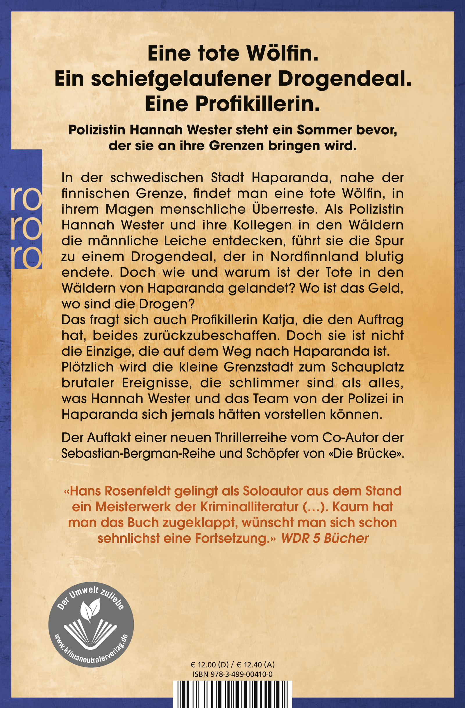 In der schwedischen Stadt Haparanda, nahe der finnischen Grenze, findet man eine tote Wölfin, in ihrem Magen menschliche Überreste. Als Polizistin Hannah Wester und ihre Kollegen in den Wäldern die Leiche entdecken, führt sie die Spur zu einem Drogendeal, der in Finnland blutig endete.