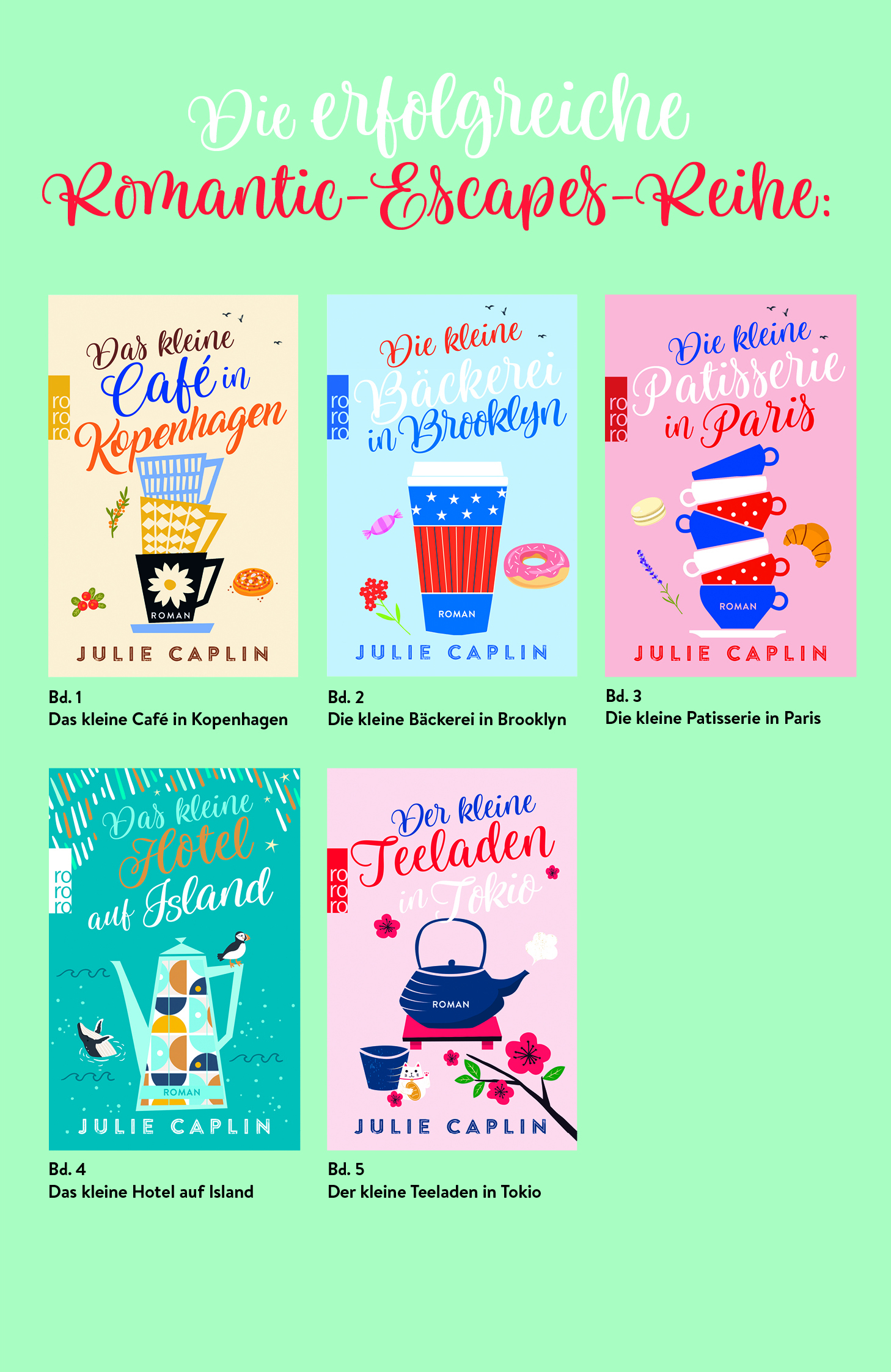 Julie Caplin lebt im Südosten Englands, liebt Reisen und gutes Essen. Als PR-Agentin hat sie in diversen Großstädten gelebt und gearbeitet. Mittlerweile widmet sie sich ganz dem Schreiben. In der Romantic-Escapes-Reihe sind bereits erschienen: «Das kleine Café in Kopenhagen», «Die kleine Bäckerei in Brooklyn», «Die kleine Patisserie in Paris» und «Das kleine Hotel auf Island». Die Romane sind auch unabhängig voneinander ein großes Lesevergnügen.