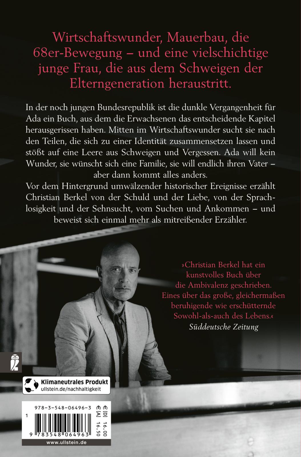 Mitten im Wirtschaftswunder sucht sie nach den Teilen, die sich zu einer Identität zusammensetzen lassen und stößt auf eine Leere aus Schweigen und Vergessen. Ada will kein Wunder, sie wünscht sich eine Familie, sie will endlich ihren Vater - aber dann kommt alles anders.