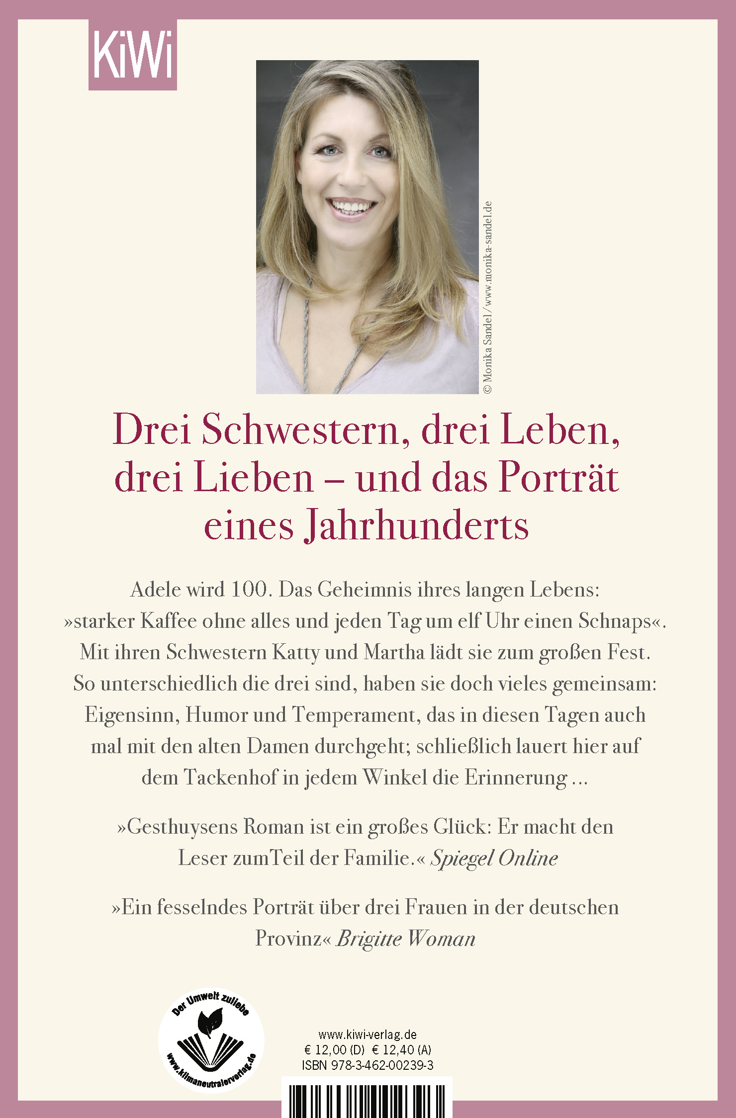 | Schlagworte | 100. Geburtstag • 20. Jahrhundert • Anne Gesthuysen • Debüt-Roman • Erinnerungen • Familie • Familiengeschichte • Frank Plasberg • Großtanten • Niederrhein • Paarduell • Vergangenheit |