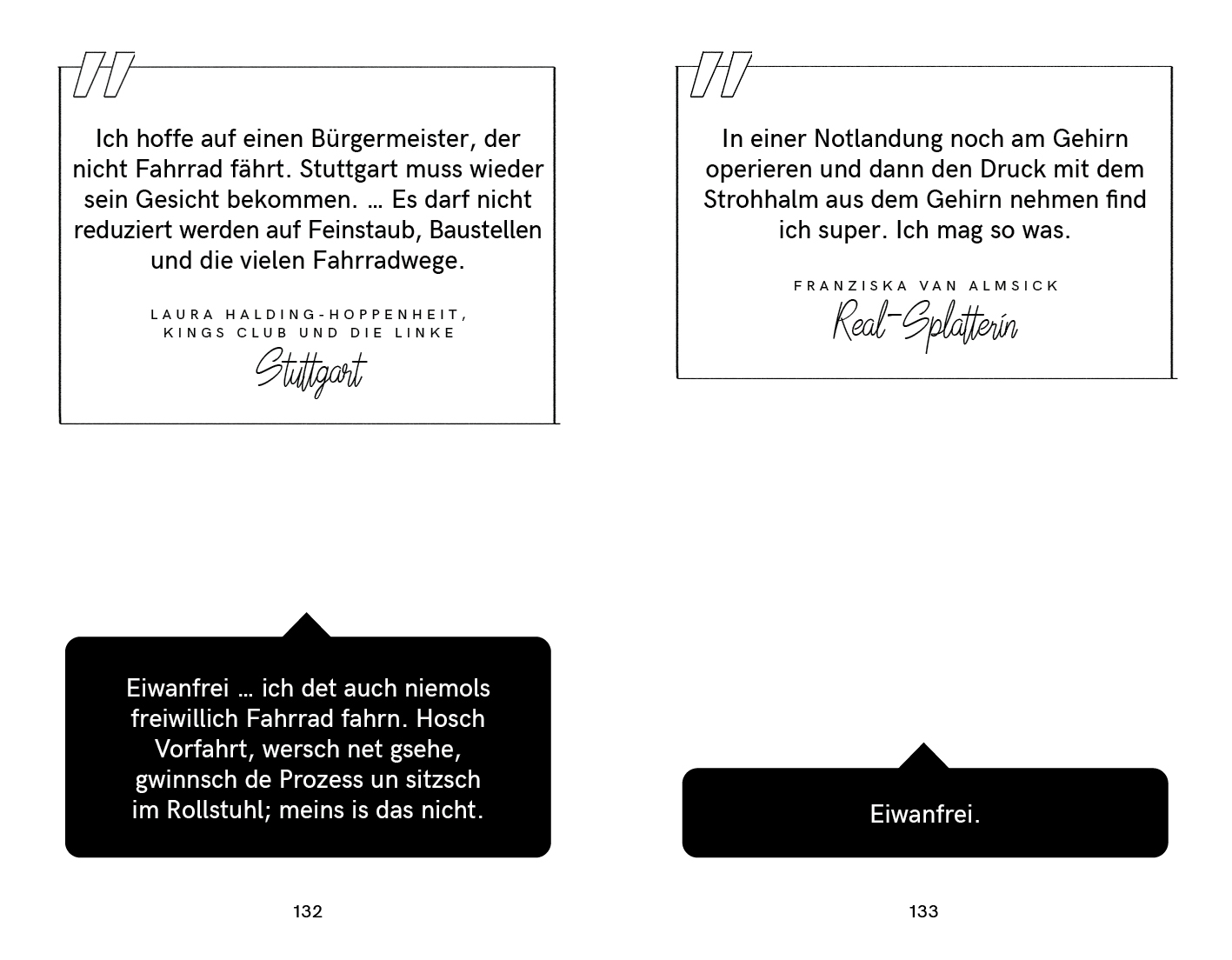 ·Marcel Reich-Ranicki: »Die anständigen Menschen arbeiten um des Ruhmes und des Geldes wegen. Die unanständigen wollen die Welt verändern und die Menschen erlösen.« Miller: »Diese Greta is mir von Ofang o komisch vorkumme «
