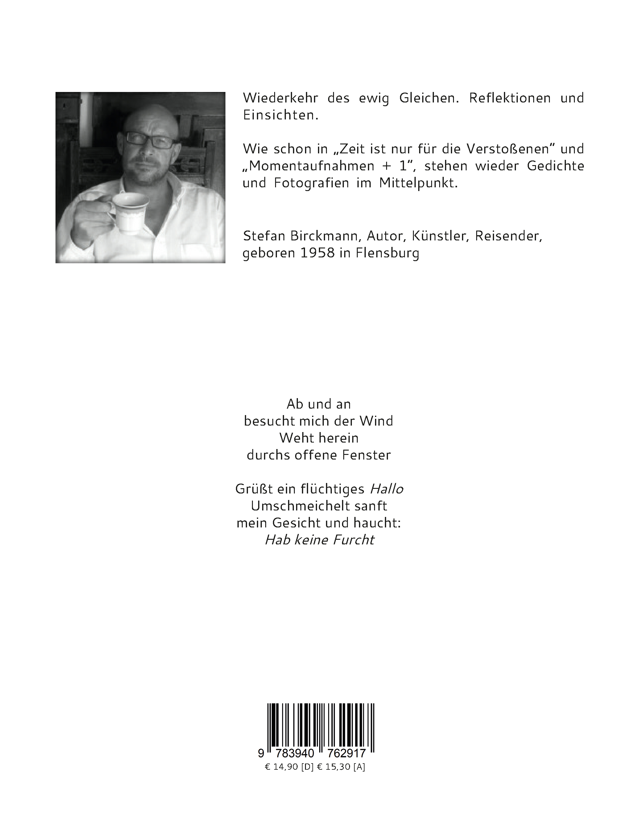Wiederkehr des ewig Gleichen. Reflektionen und Einsichten. Wie schon in "Zeit ist nur für die Verstoßenen" und "Momentaufnahmen plus 1", stehen wieder Gedichte und Fotografien im Mittelpunkt.