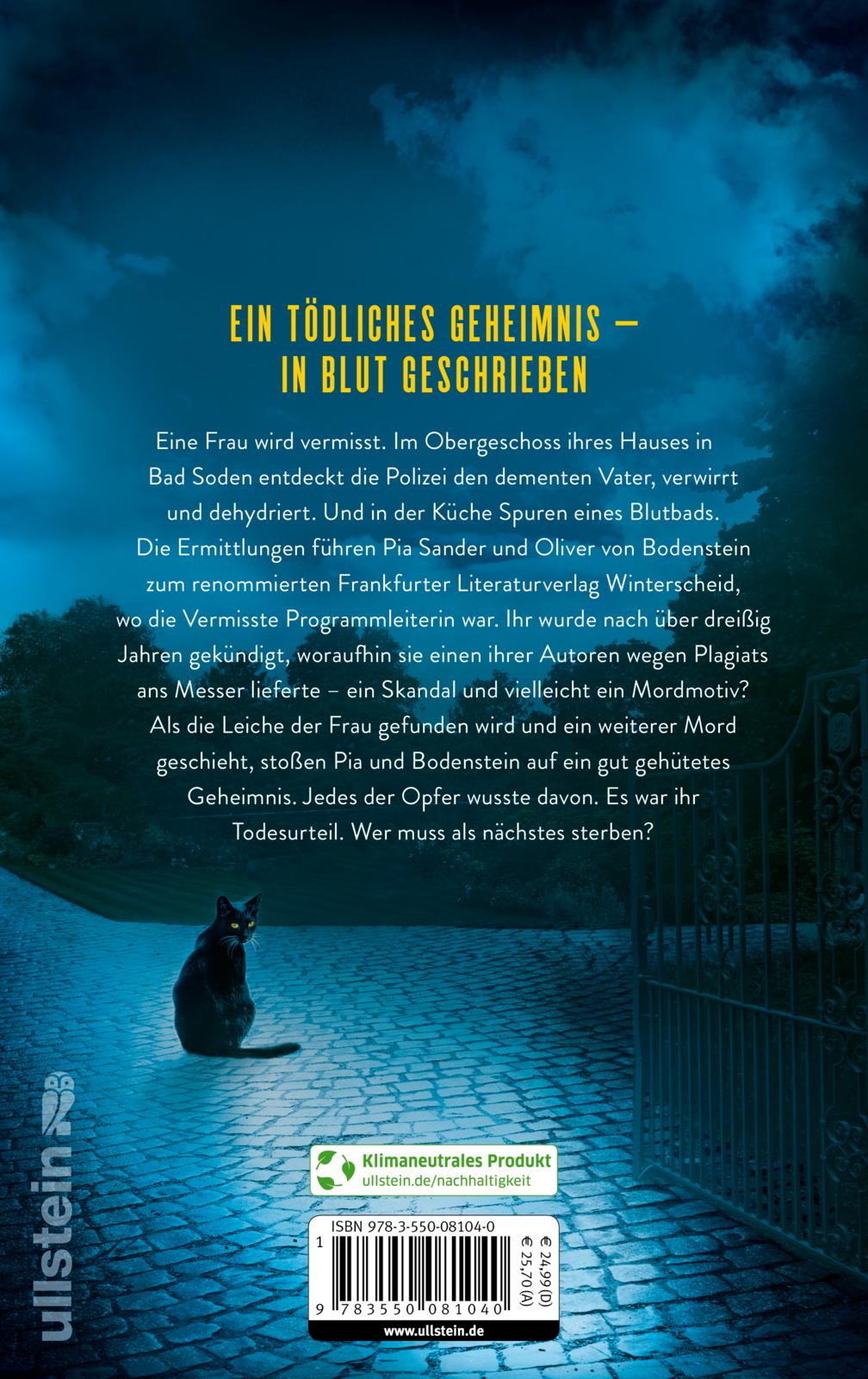 Die Ermittlungen führen Pia Sander und Oliver von Bodenstein zum renommierten Frankfurter Literaturverlag Winterscheid, wo die Vermisste Programmleiterin war. Ihr wurde nach über dreißig Jahren gekündigt, woraufhin sie einen ihrer Autoren wegen Plagiats ans Messer lieferte – ein Skandal und vielleicht ein Mordmotiv?