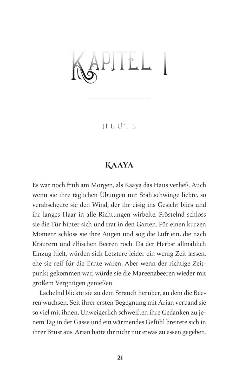 Kaaya hat keine Vergangenheit, keine Erinnerungen, keine Familie. Nichts außer Arian, der sie einst von den Straßen geholt und bei sich aufgenommen hat. Doch bevor sie ihrem besten Freund sagen kann, was sie wirklich für ihn empfindet, wird seine Seele von einem Schattenelfen gestohlen und er bleibt als Hülle zurück. Um ihn zu retten, reist die 18-Jährige ins Reich der Schatten, wo sie sich inmitten eines uralten Krieges wiederfindet. Das, was Kaaya dort über sich erfährt, bringt alles ins Wanken, an das sie bisher geglaubt hat. Sie muss erkennen, dass sie niemandem mehr vertrauen kann, nicht einmal sich selbst und ihren eigenen Gefühlen - gerade wenn es um den mysteriösen Kronprinzen Ilias geht, der seine ganz persönliche Mission verfolgt ...