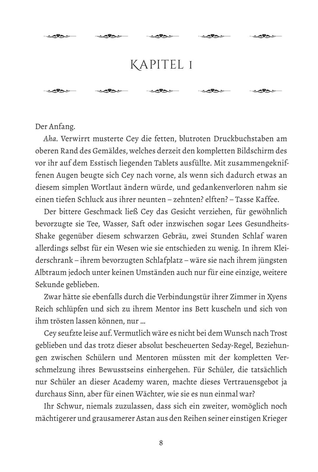 Endlich hat Cey erkannt, welche Gefahr auf alle J'ajal dieser Welt zukommt. Doch noch immer sind sie und ihre Freunde weit davon entfernt, die Finsternis abwenden zu können. Während sie alles daransetzen, ihre Feinde zu bekämpfen, fällt ausgerechnet Xyen, Ceys attraktiver und einfühlsamer Mentor aus der Seday Academy, in die Hände ihrer Widersacher. Aber Cey ist nicht bereit den einzigen Mann zu verlieren, den sie ihrer dunklen Vergangenheit zum Trotz je lieben könnte - auch wenn diese Liebe gegen alle Gesetze ihrer Welt verstößt...