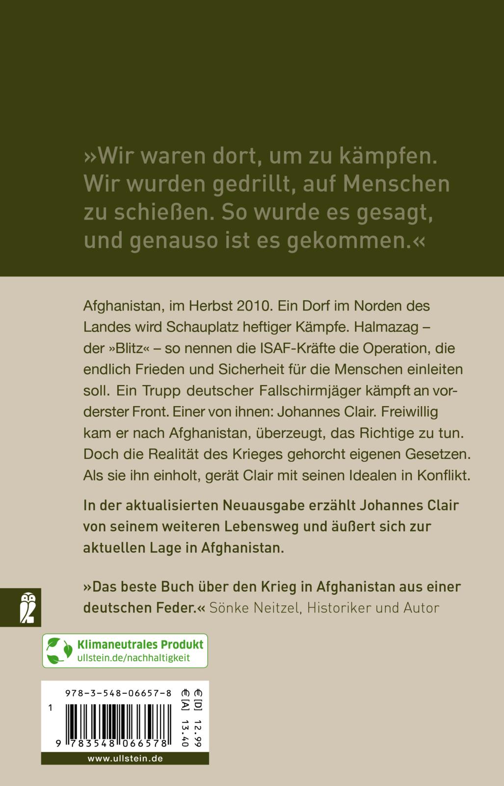Afghanistan, im Herbst 2010. Ein Dorf im Norden des Landes wird Schauplatz heftiger Kämpfe. »Halmazag« - »Blitz«, so nennen die ISAF-Kräfte die Operation, die endlich Frieden und Sicherheit für die Menschen bringen soll. Ein Trupp deutscher Fallschirmjäger kämpft an vorderster Front. Einer von ihnen: Johannes Clair. Freiwillig kam er nach Afghanistan, überzeugt, das Richtige zu tun. Doch die Realität des Krieges gehorcht eigenen Gesetzen. Als sie ihn einholt, gerät Clair mit seinen Idealen in Konflikt.