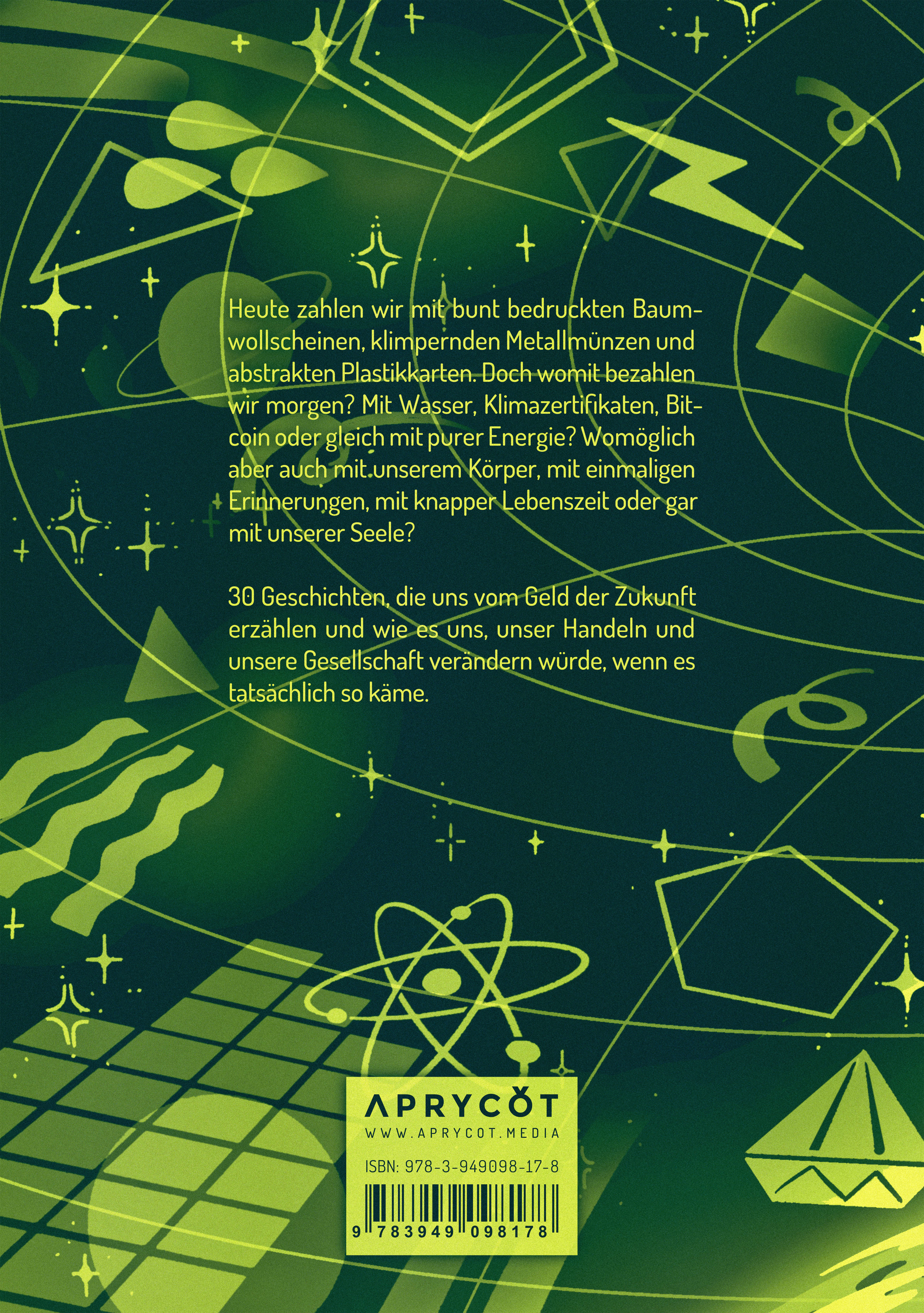 Heute zahlen wir mit bunt bedruckten Baumwollscheinen, klimpernden Metallmünzen und abstrakten Plastikkarten. Doch womit bezahlen wir morgen? Mit Wasser, Klimazertifikaten, Bitcoin oder gleich mit purer Energie? Womöglich aber auch mit unserem Körper, mit einmaligen Erinnerungen, mit knapper Lebenszeit oder gar mit unserer Seele?30 Geschichten, die uns vom Geld der Zukunft erzählen und wie es uns, unser Handeln und unsere Gesellschaft verändern würde, wenn es tatsächlich so käme.