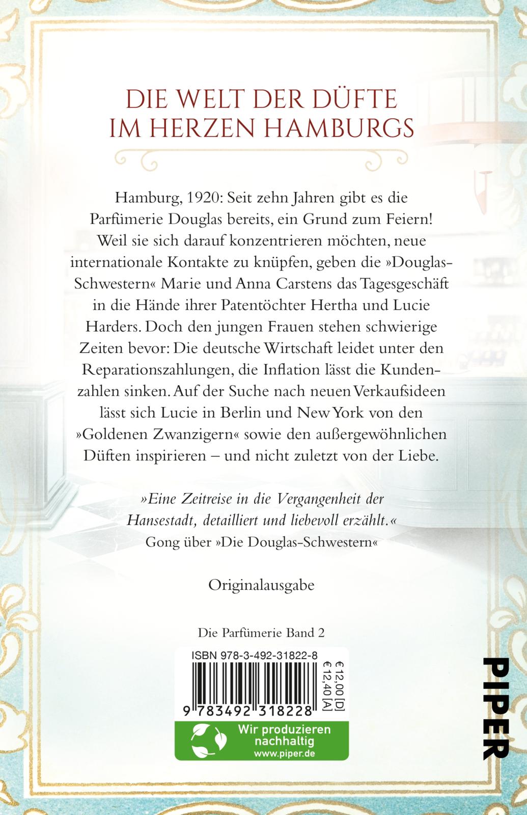 Hamburg, 1920: Zehn Jahre gibt es die Parfümerie Douglas bereits, ein Grund zum Feiern! Weil sie sich darauf konzentrieren möchten, neue internationale Kontakte zu knüpfen, geben die »Douglas-Schwestern« Marie und Anna Carstens das Tagesgeschäft in die Hände ihrer Patentöchter Hertha und Lucie Harders. Doch den jungen Frauen stehen schwierige Zeiten bevor: Die deutsche Wirtschaft leidet unter den Reparationszahlungen, die Inflation lässt die Kundenzahlen sinken. Auf der Suche nach neuen Verkaufsideen lässt sich Lucie in Berlin und New York von den »Roaring Twenties« sowie den außergewöhnlichen Düften inspirieren - und nicht zuletzt von der Liebe.